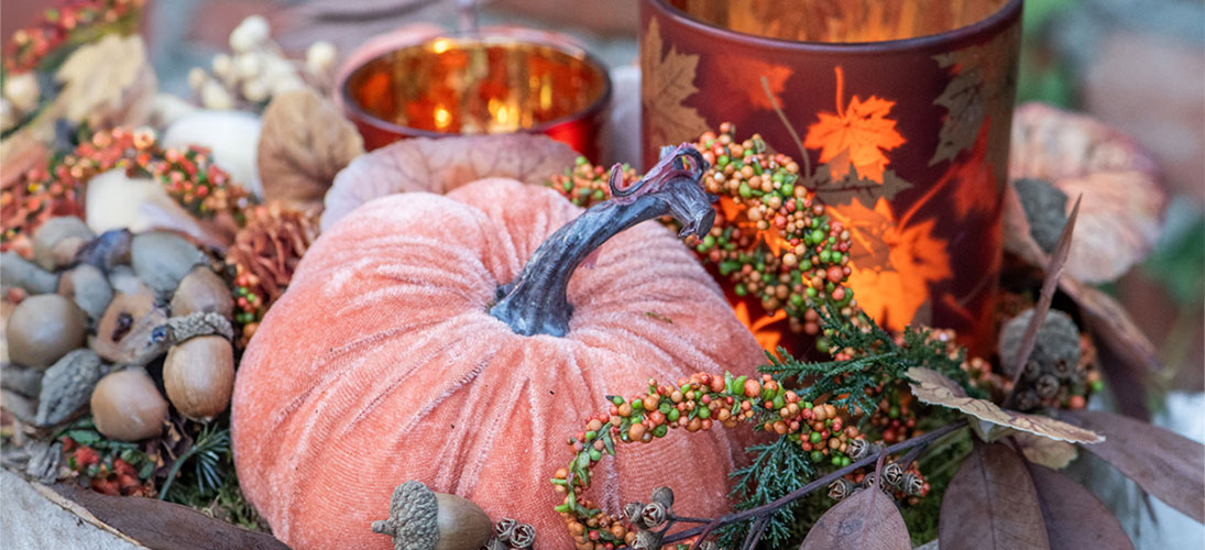 Herbstliche Dekoartikel als Tischdekoration und für Gestecke