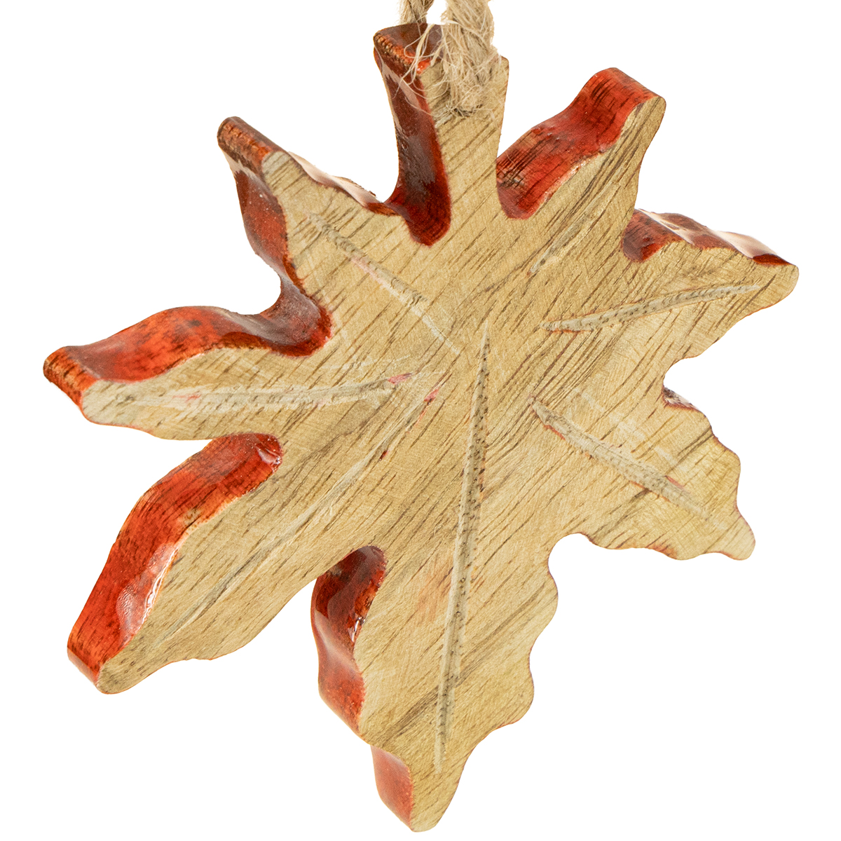 - Set aus 6 dekorativen Ahornblatt-Anhängern in Grün, Rot und Braun