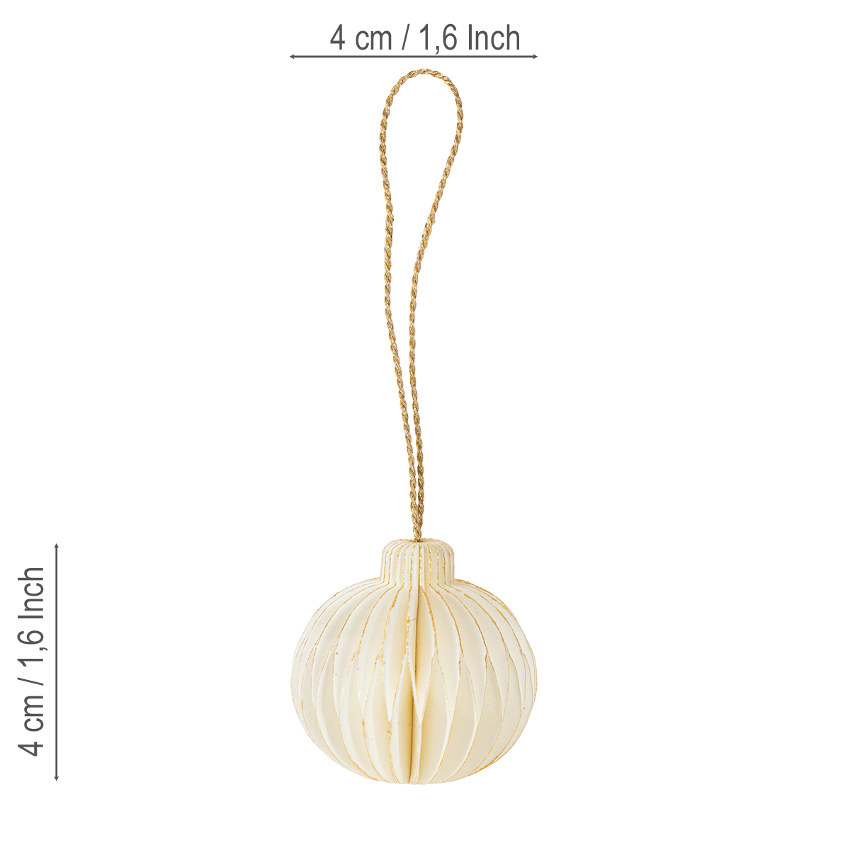 Bringen Sie nordischen Charme und zeitlose Eleganz in Ihre Weihnachtsdeko! Unser Baumschmuckset aus weißem Wabenpapier mit edlem Goldrand verleiht jedem Raum die perfekte festliche Note. Mit einer Größe von 4 cm sind die sechs Hänger ideal für kleinere Weihnachtsbäume, Tischdekorationen oder als originelle Geschenkverzierungen.