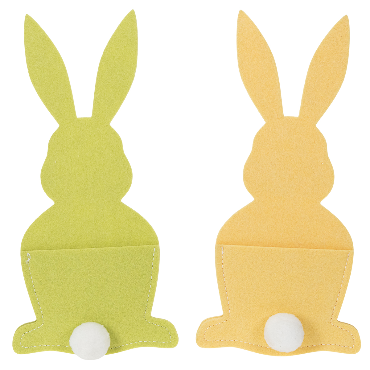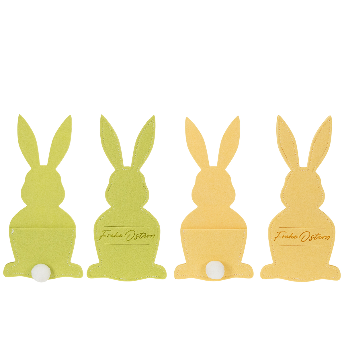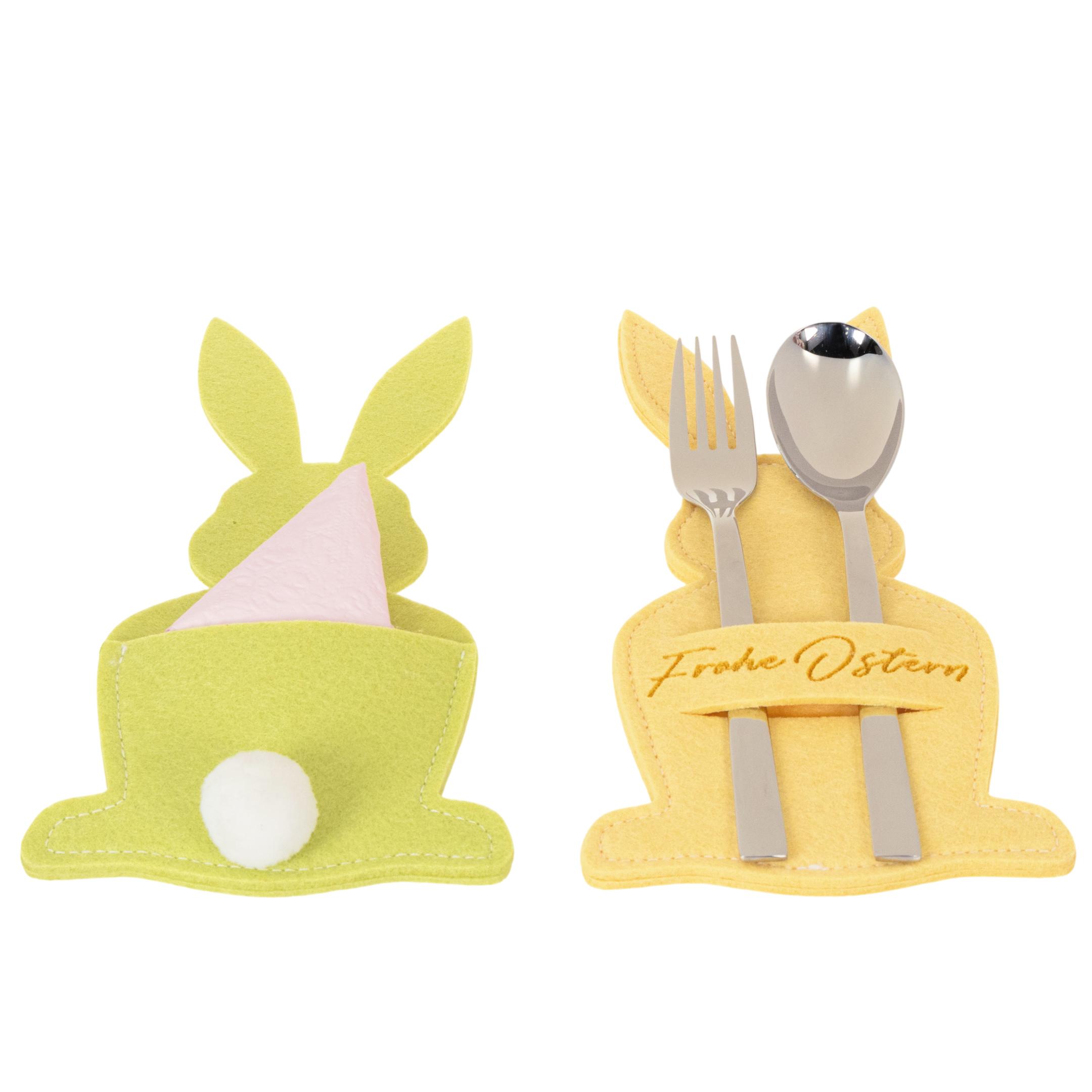 Bestecktaschen Hase aus Filz mit Frohe-Ostern-Druck, Gelb und Grün, 26cm, 4er-Set