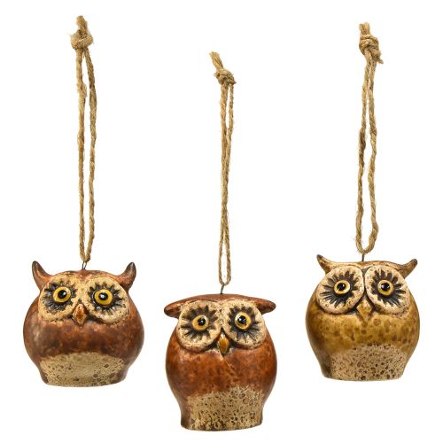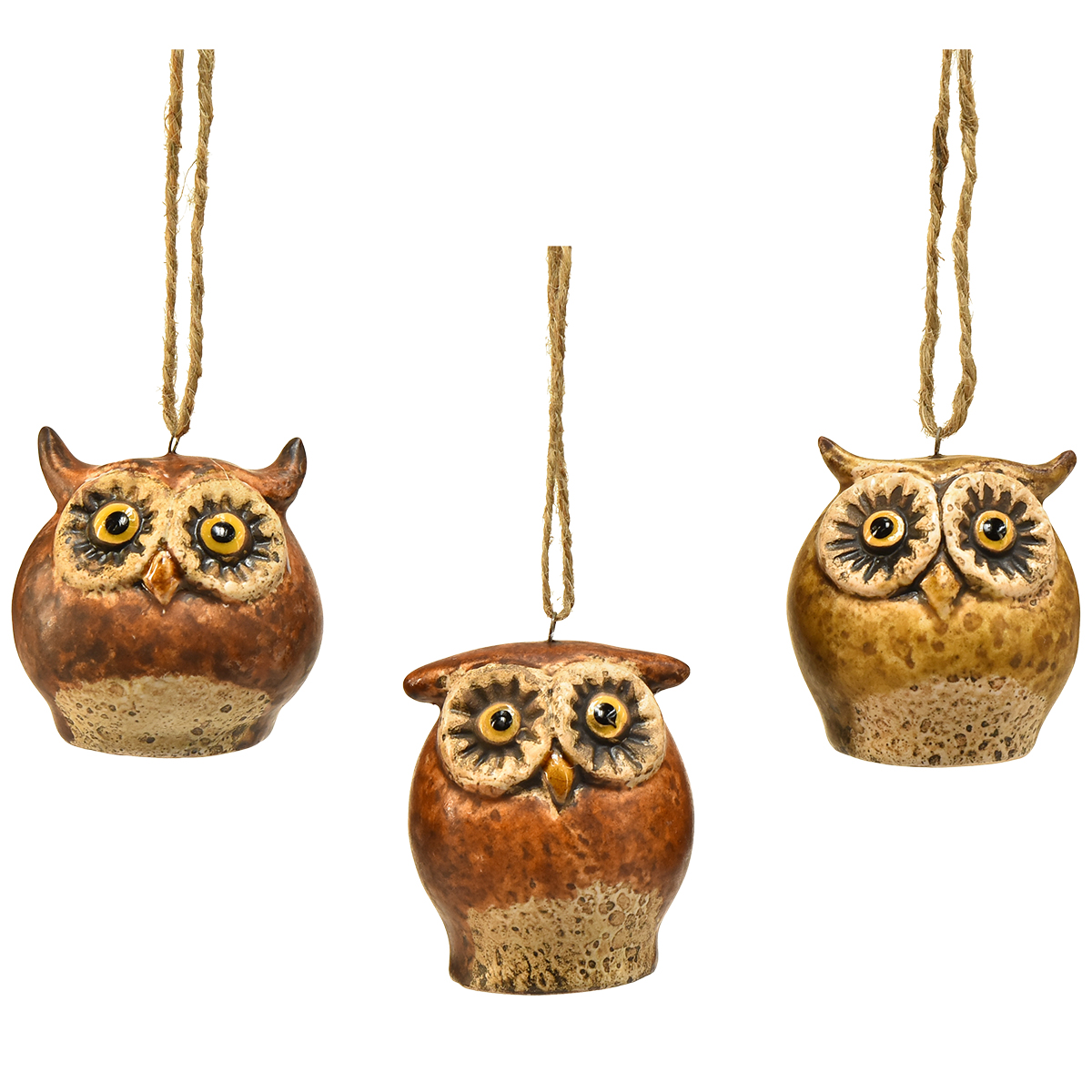 - Drei dekorative Eulenanhänger in verschiedenen Brauntönen