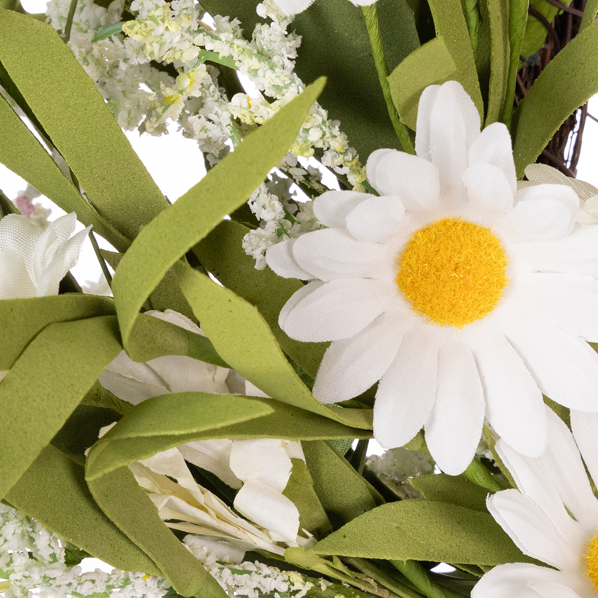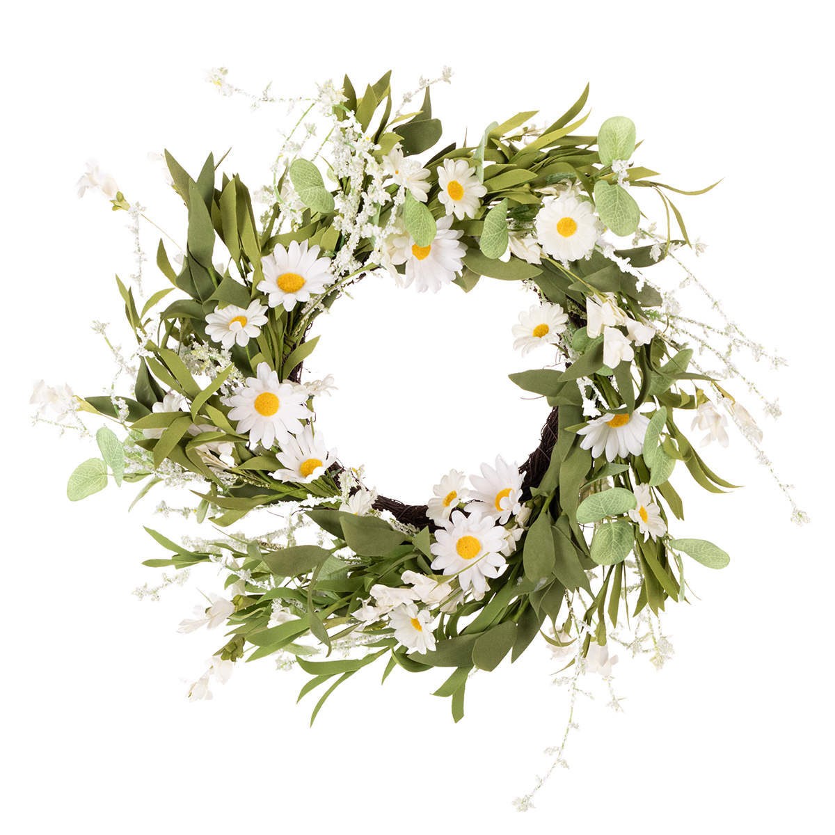 Produktname: Blütenkranz aus Kunststoff, künstliche Margeriten, Durchmesser 55 cm, Tür- und Wanddekoration