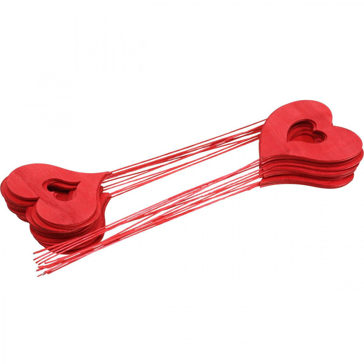 Blumenstecker Herz, Holzdeko zum Stecken, Valentinstag, Dekostecker Rot, Muttertag L31–33cm 24 St