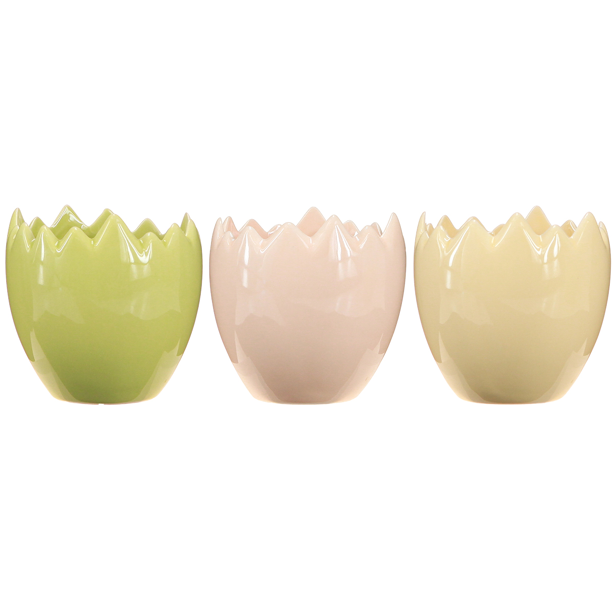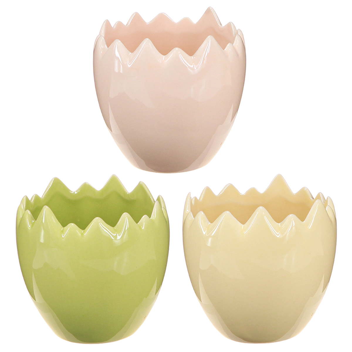 Produktname: Blumentöpfe aus Keramik mit zerbrochener Kante in Pastellfarben, eiförmig, 9cm, 3er-Set, für Deko und Pflanzen