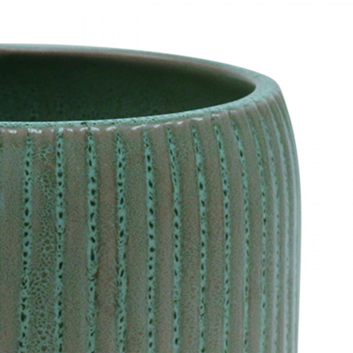 Blumentopf Keramik Übertopf Rillen Grün Ø10cm H8,5cm