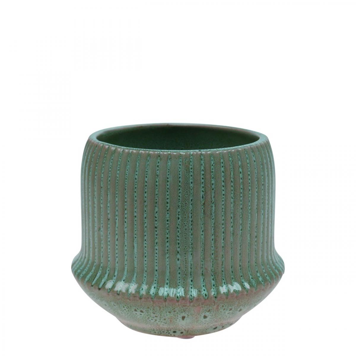 Produktname: Blumentopf Keramik Übertopf Rillen Grün Ø10cm H8,5cm