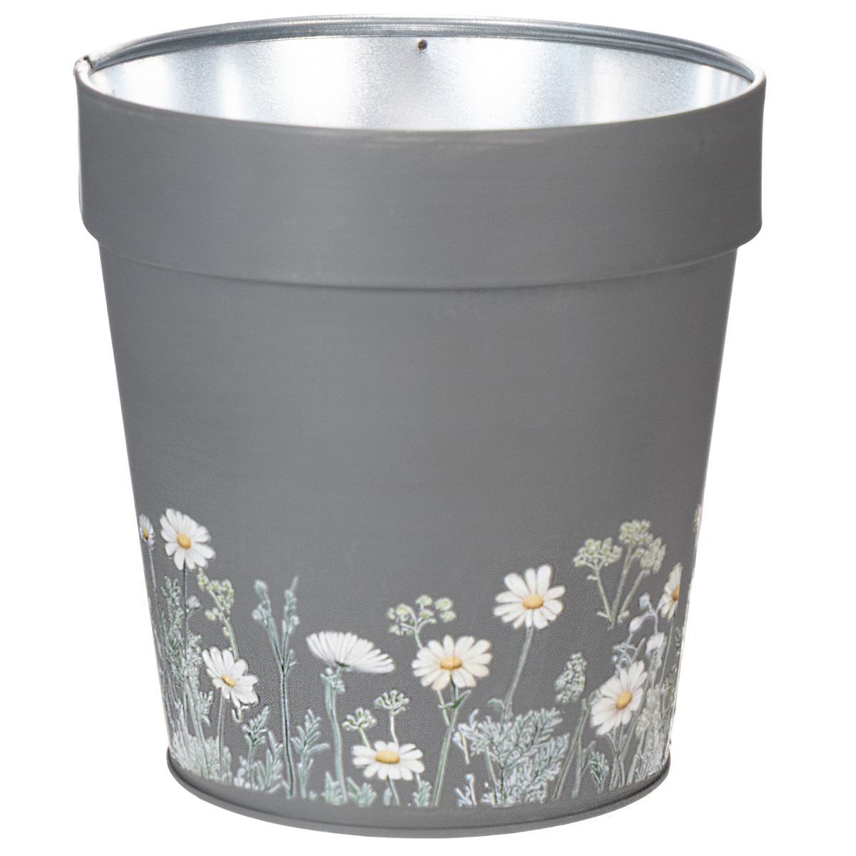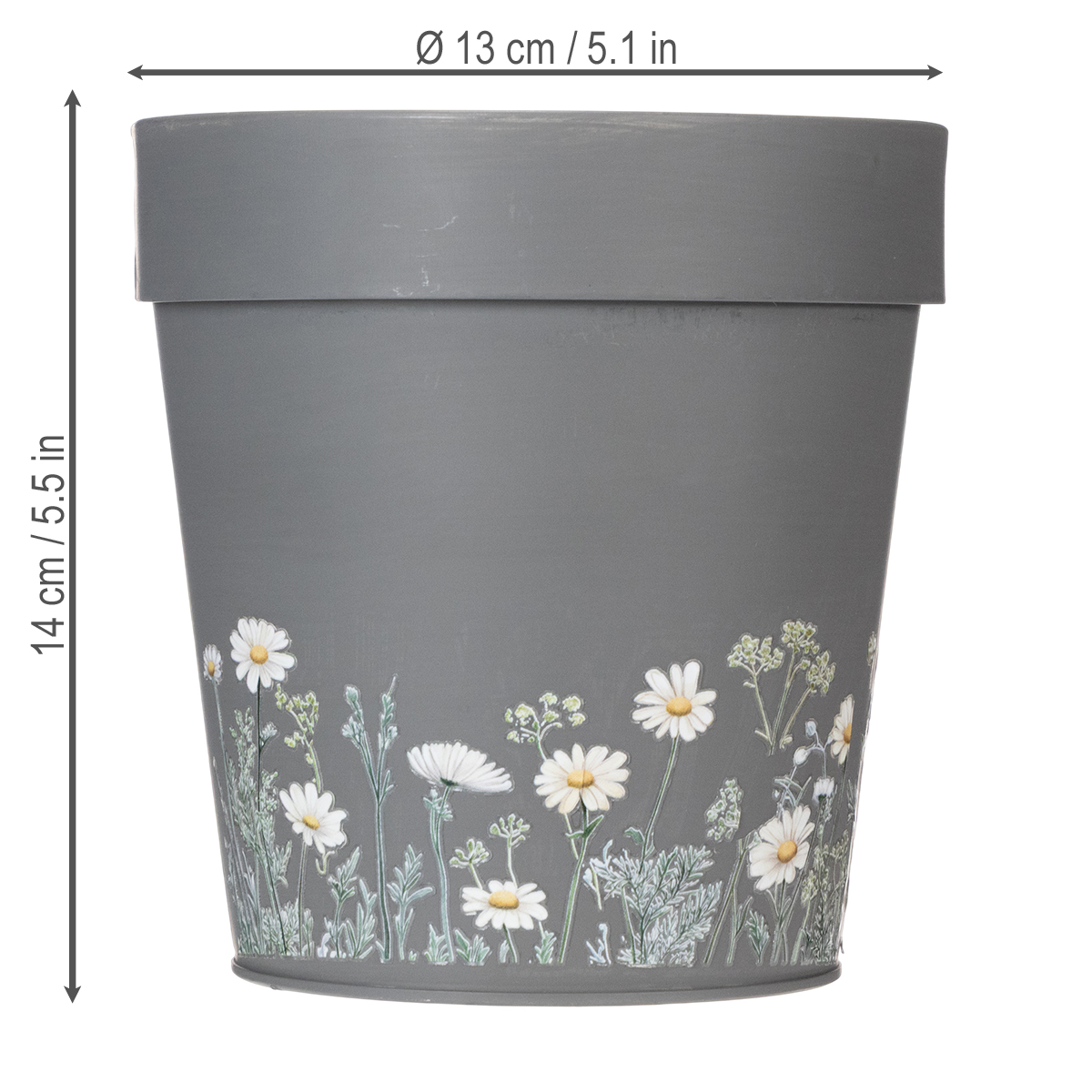Grauer Blumentopf mit Blumenmuster aus Metall 13cm im 4er-Set