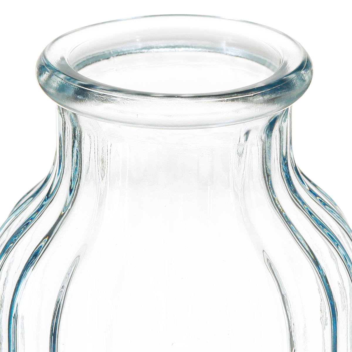 Produktname: Blumenvase Glas Rillen Blau Ø11cm H14,5cm 2er Set Dekoration