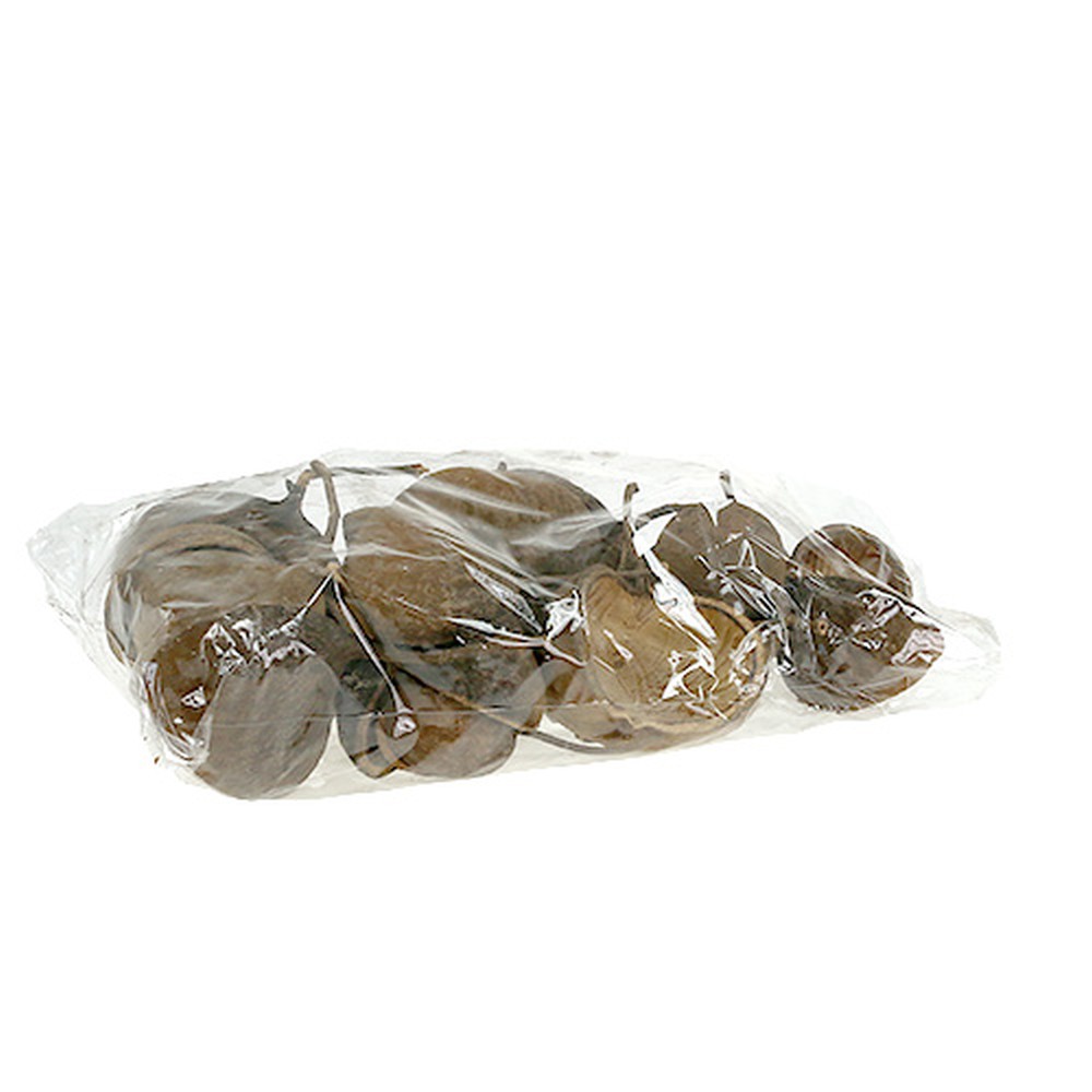 Die Buddha Nut in Natur wird in einem Beutel zu 15 Stück geliefert. Wie bei allen Naturprodukten üblich, unterliegen auch diese Baumfrüchte einer Größenschwankung. Somit beläuft sich die Größe der einzelnen Nuss auf etwa 6 bis 13 Zentimeter, wobei die Öffnung zwischen 4 und 10 Zentimeter weit sein kann. Dadurch können Sie die Buddhanuss auch sehr gut für ein Trocken- oder Trauergesteck zu Totensonntag verwenden. Aber auch als exotische Streudeko für die Tische in Ihrem Gastraum oder für die Auslage in Ihrem Schaufenster eignet sich die Buddha-Nut hervorragend. Wenn Sie ein Terrarium besitzen, macht sich die Nuss als Versteck für Ihre Reptilien oder Insekten ebenfalls sehr gut und sieht obendrein noch richtig schick aus!