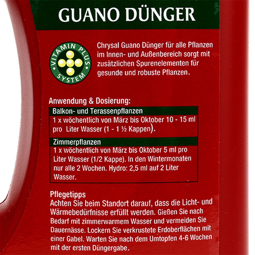 Produktname: Chrysal Guano Dünger für Zimmer, Balkon 1L