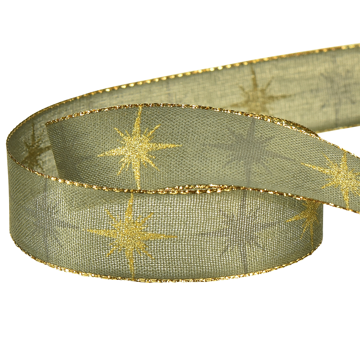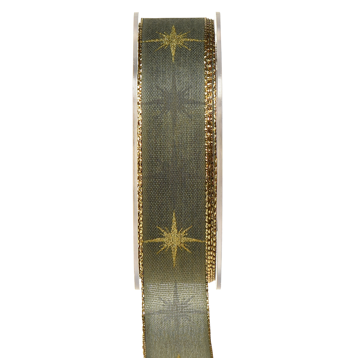 Produktname: Sternenband Grau Gold Sterne Schmuckband B25mm L20m