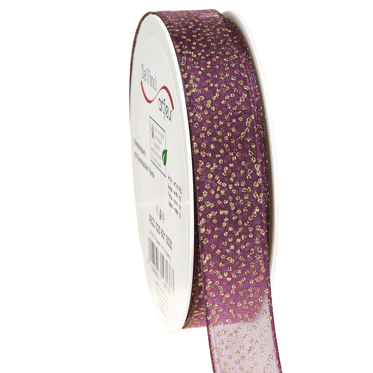 Deko Band Lila Goldene Punkte Formstabil 25mm 20m Eleganz Floristik