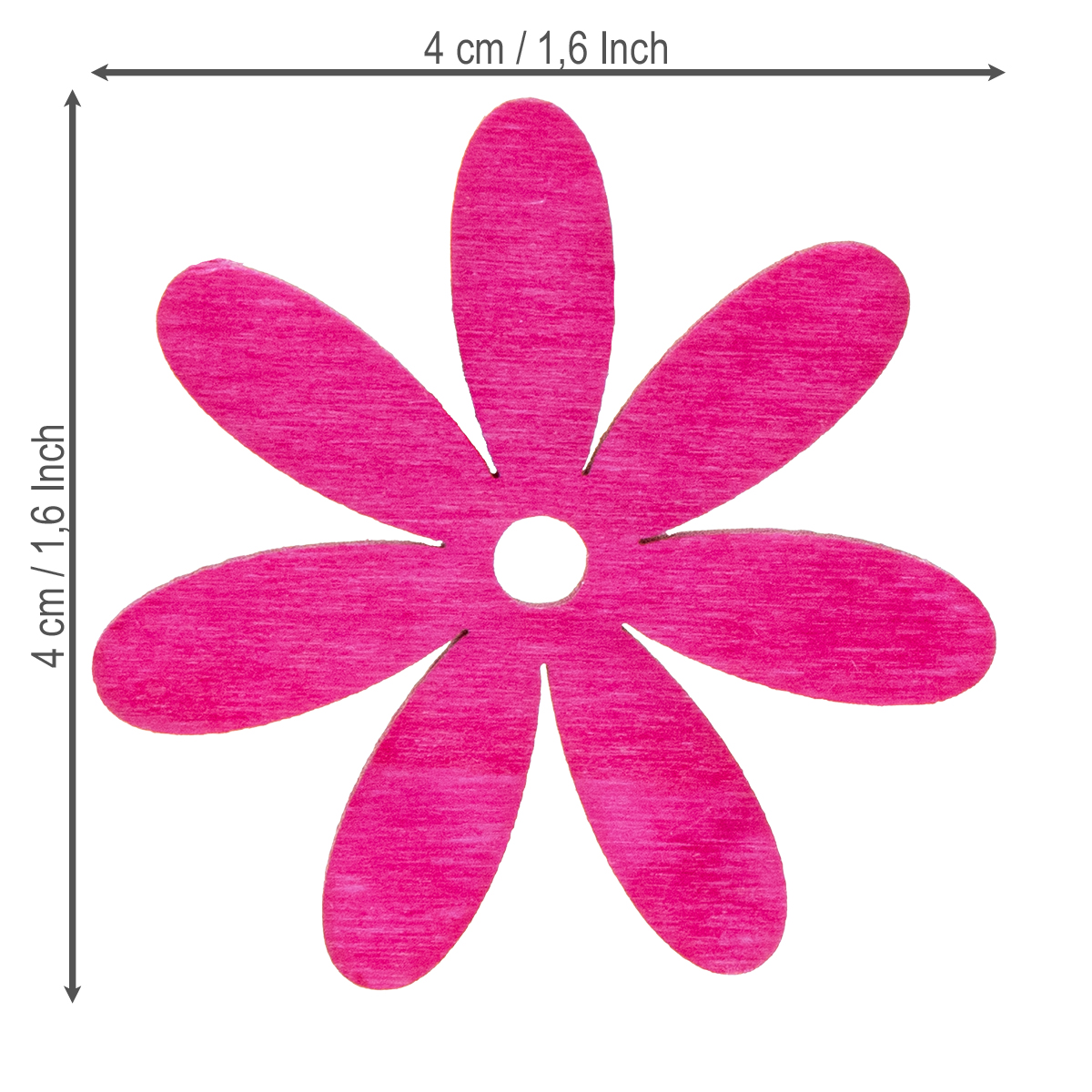 Produktname: Deko Blüten aus Holz Rosa Pink Lila 4cm Streublumen 72 Stück für Dekoration