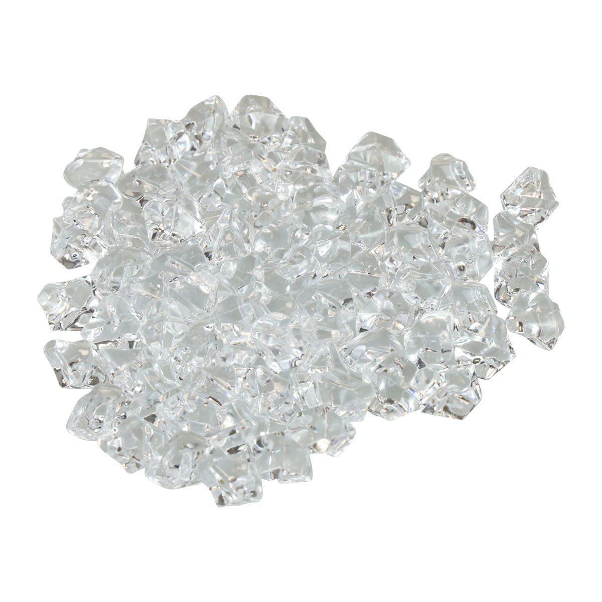 Kunsteis für Lebensmittelattrappen wie falsche Fische oder alkoholische Getränke, deren Eis in der Sonne nicht schmilzt, könnte kaum wirklichkeitsgetreuer sein als diese Eisbröckchen aus Acryl. Die Mini-Eiswürfel haben annähernd die Form von Diamanten.