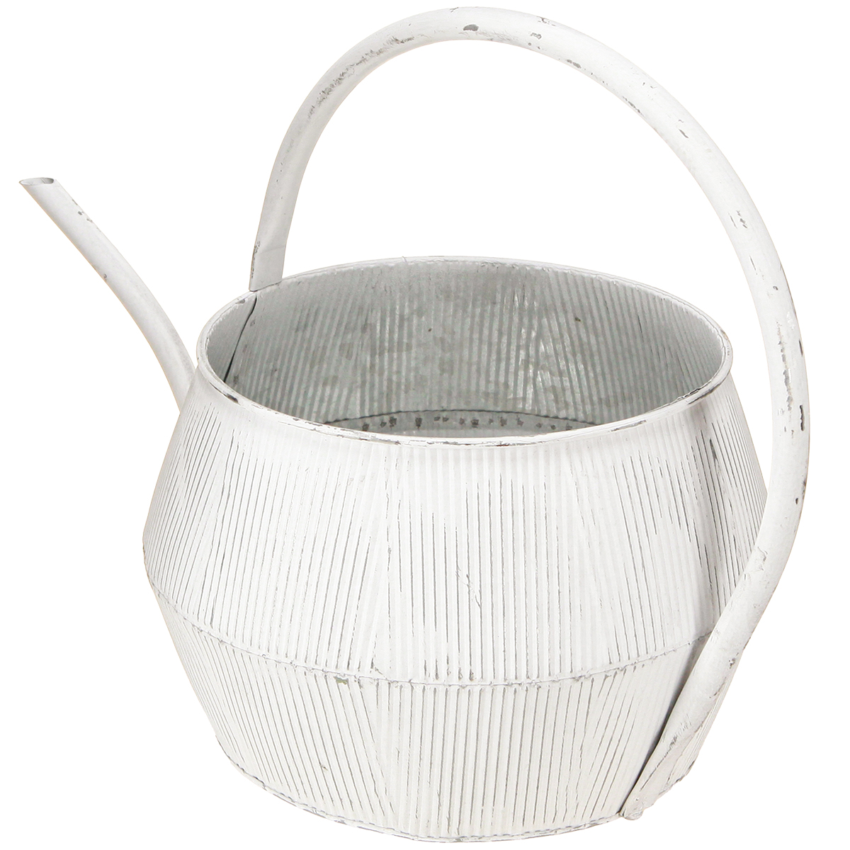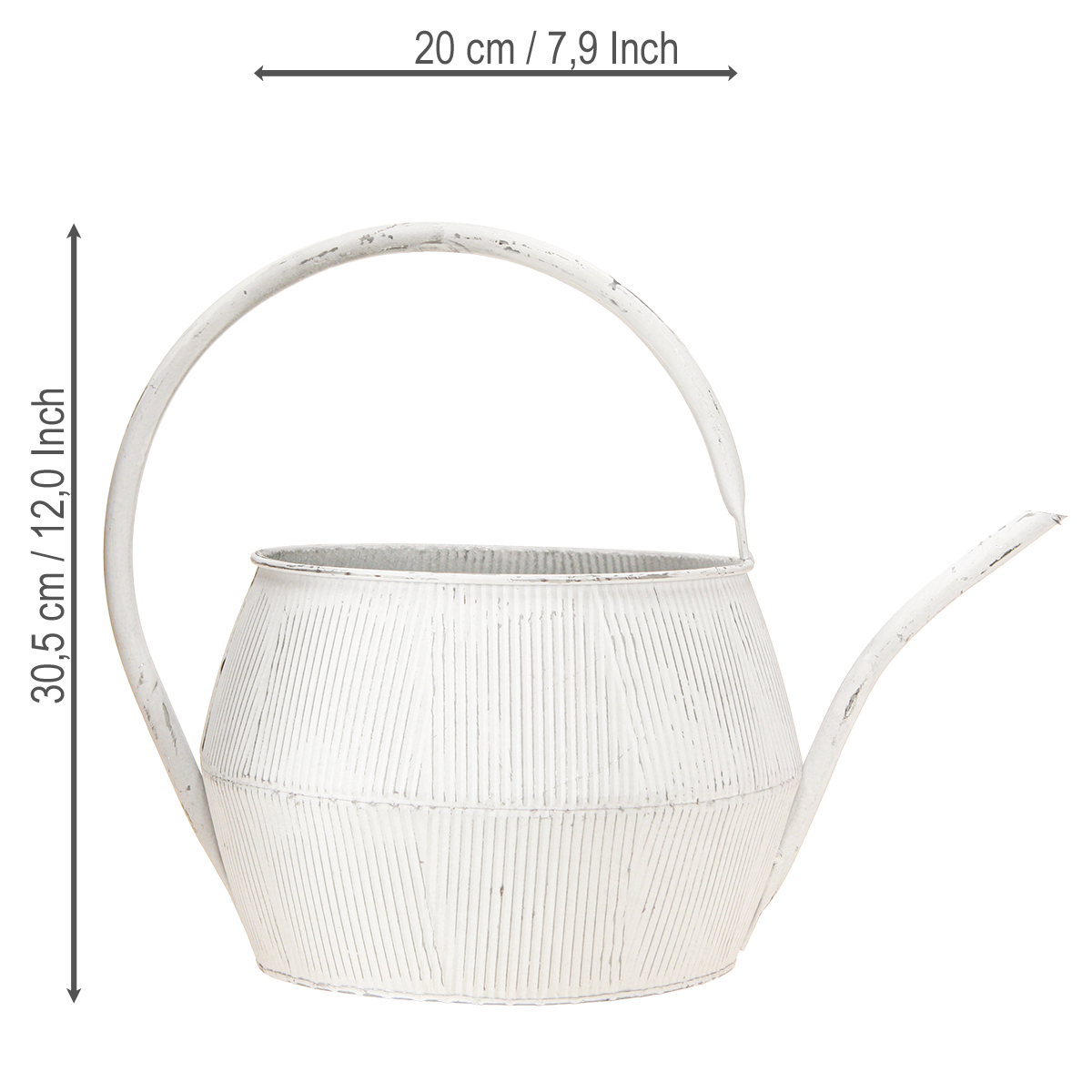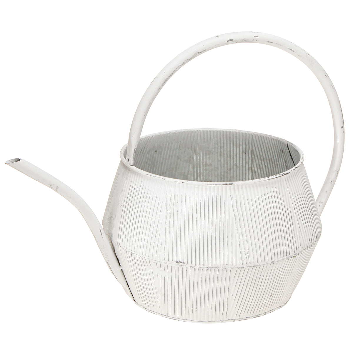 Deko Gießkanne Weiß Vintage Metall Rillen Blumentopf 25cm