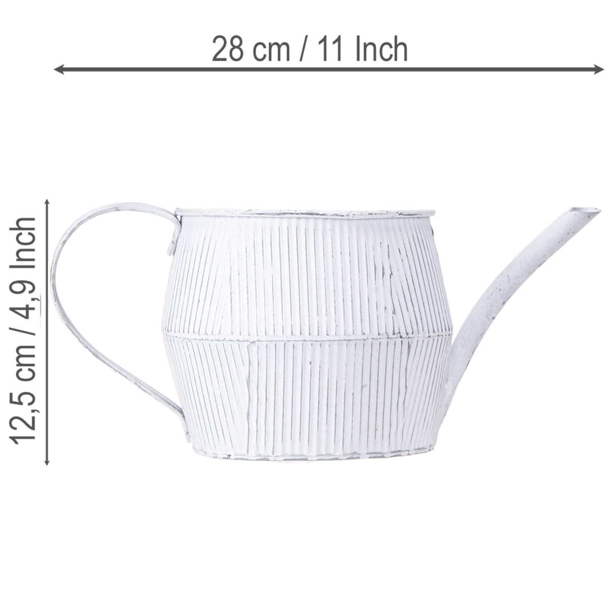 Unsere stilvolle, weiß gewaschene Metallkanne bringt mit ihrer Vintage-Optik nostalgischen Charme in jede Dekoration. Ideal für Floristen und Blumengeschäfte, um kreative Blumenarrangements zu präsentieren und die Kundschaft zu begeistern.