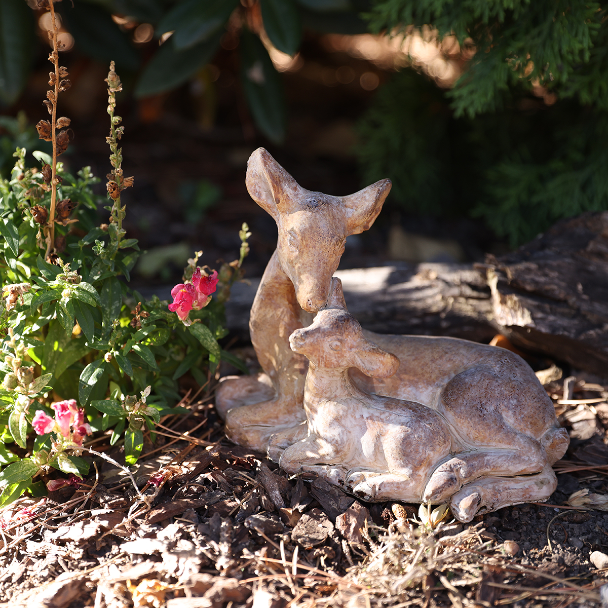 Deko Rehfigur mit Kitz aus Steinguss Braun Weiß 20x11x17cm Innenbereich