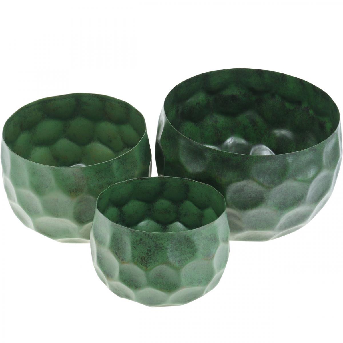 Deko Schale Metall Grün Vintage Übertopf Ø25/20,5/16,5cm 3er-Set
