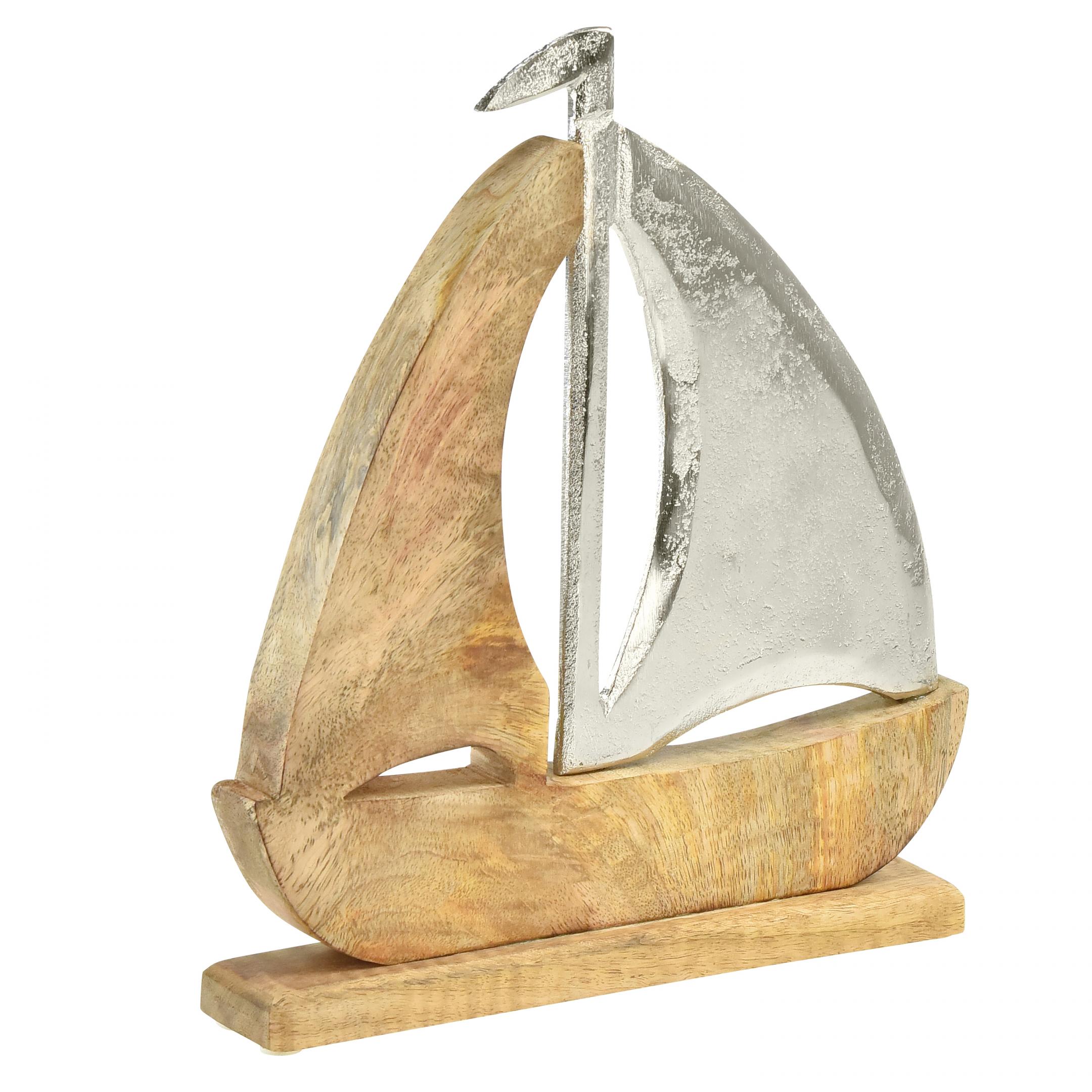 Deko Schiff Holz Metall Silber Mangoholz 16,5x4x18,5cm