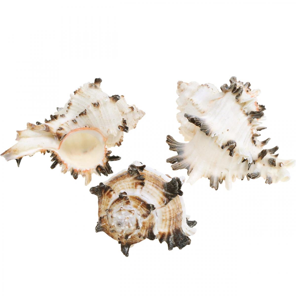 Die wunderschönen Deko-Schneckenhäuser sorgen gestreift für Aufsehen in der Naturdeko. Die Seeschnecken stammen aus den Tiefen des indopazifischen Meeres und gehören zur Gattung Murex, den Stachelschnecken. Die schneeweißen und getigerten Gehäuse der Muscheldeko sind ausgesprochen pittoresk geformt. Jede Natur-Schnecke wurde für die exklusive maritime Dekoration sorgfältig ausgesucht, entleert und gereinigt.