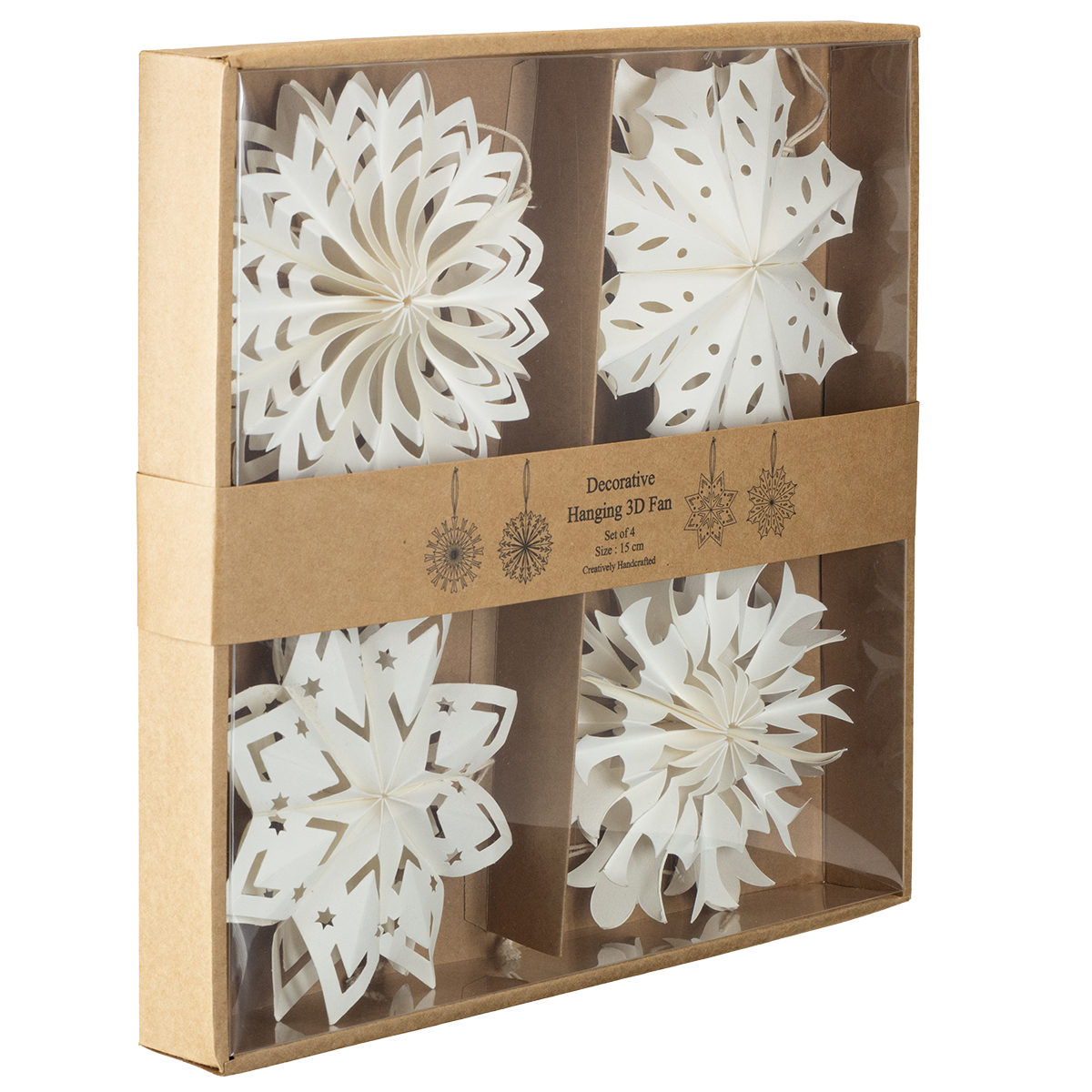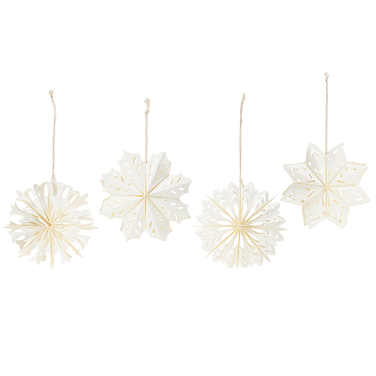 - 4 filigran ausgearbeitete Schneeflocken aus stabilem Papier