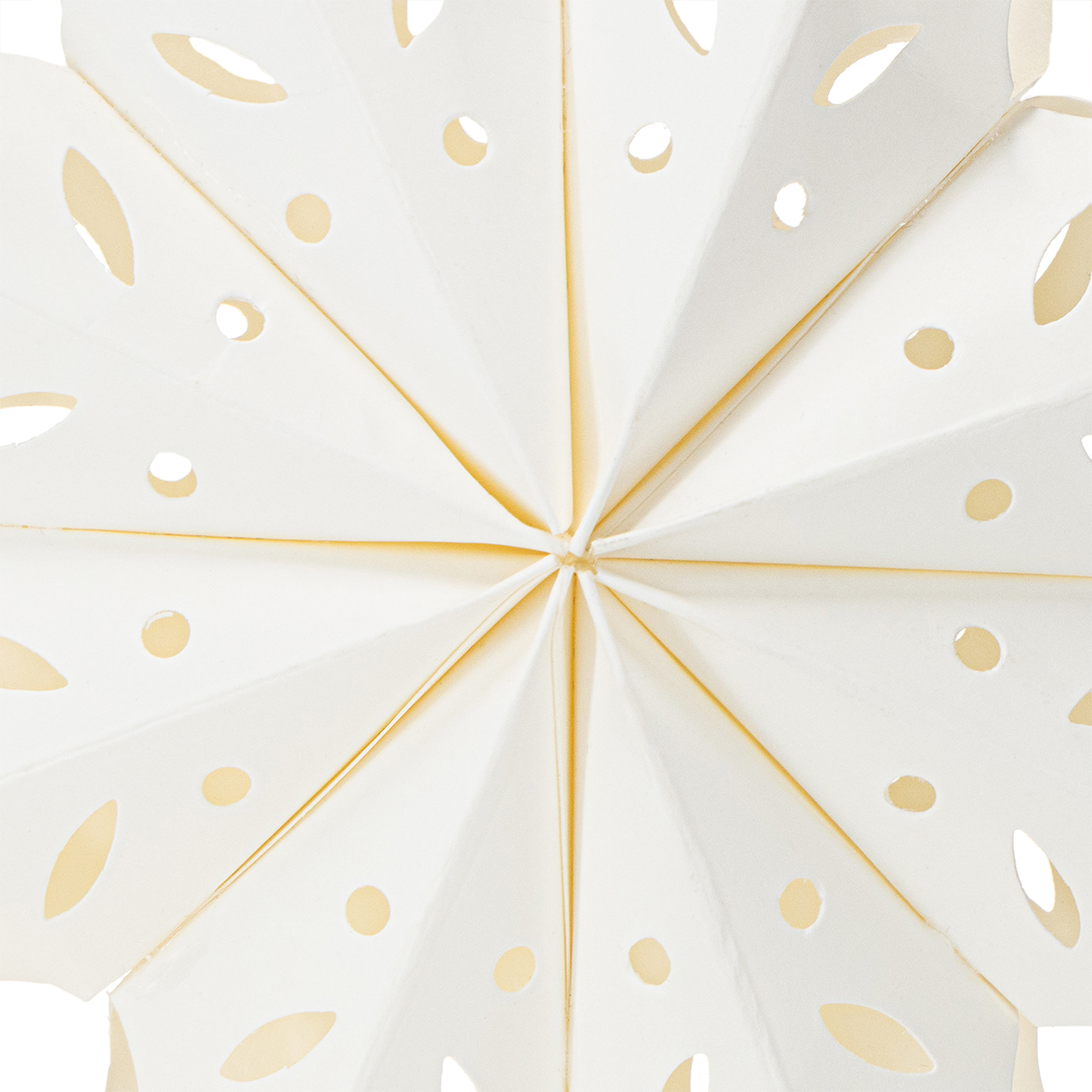 Die weißen Deko-Schneeflocken aus hochwertigem Papier kombinieren minimalistische Eleganz mit vielseitigen Einsatzmöglichkeiten. Ob am Weihnachtsbaum, im Fenster oder über einer festlich gedeckten Tafel, die Schneeflocken lassen jeden Raum erstrahlen. Dank der beiliegenden Baumwollkordel ist die Anbringung ganz einfach und die 15 cm großen Ornamente bieten zahlreiche Dekorationsmöglichkeiten.