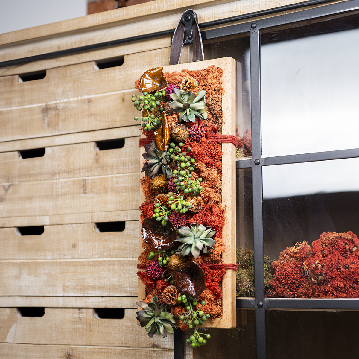 Sie möchten mit diesem Deko-Tablett ganz im Trend liegen? Dann stellen Sie verschiedene farbige Glasvasen mit Trockenblumen auf dem Holz-Tablett auf. Frische Gartenblumen, einzeln auf kleine Vasen verteilt, werden ebenfalls zum trendigen Hingucker. Dabei sollten Sie jedoch darauf achten, Wasserflecken auf der Holzdeko zu vermeiden.