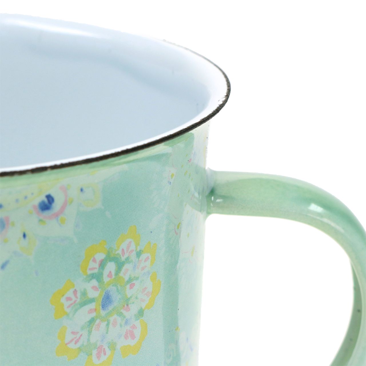 Meditative Wirkung auf Seelenebene: Diese hochwertig emaillierte Dekotasse ist mit einem edlen Druck mit tollen Blüten und in Anlehnung an ein Mandala gestaltet. Zarte Pastellfarben unterstützen die harmonische Wirkung. Mandalas haben in einigen Religionen eine besondere Bedeutung und werden auch zu Meditationszwecken verwendet. Es entsteht ein meditatives Erlebnis mit heilenden Impulsen, die Sie in Ihre Mitte zurückbringen.