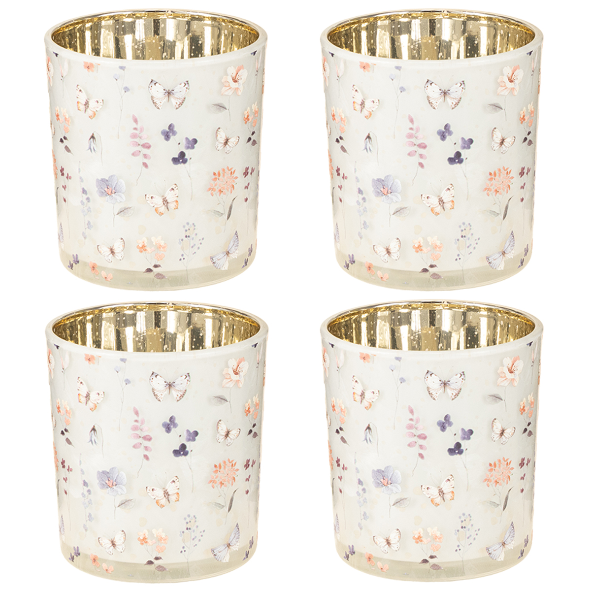 Deko Windlicht Glas mit Schmetterlingsmotiv, 8 cm, 4er-Set – Stilvolle Akzente für Zuhause oder Events