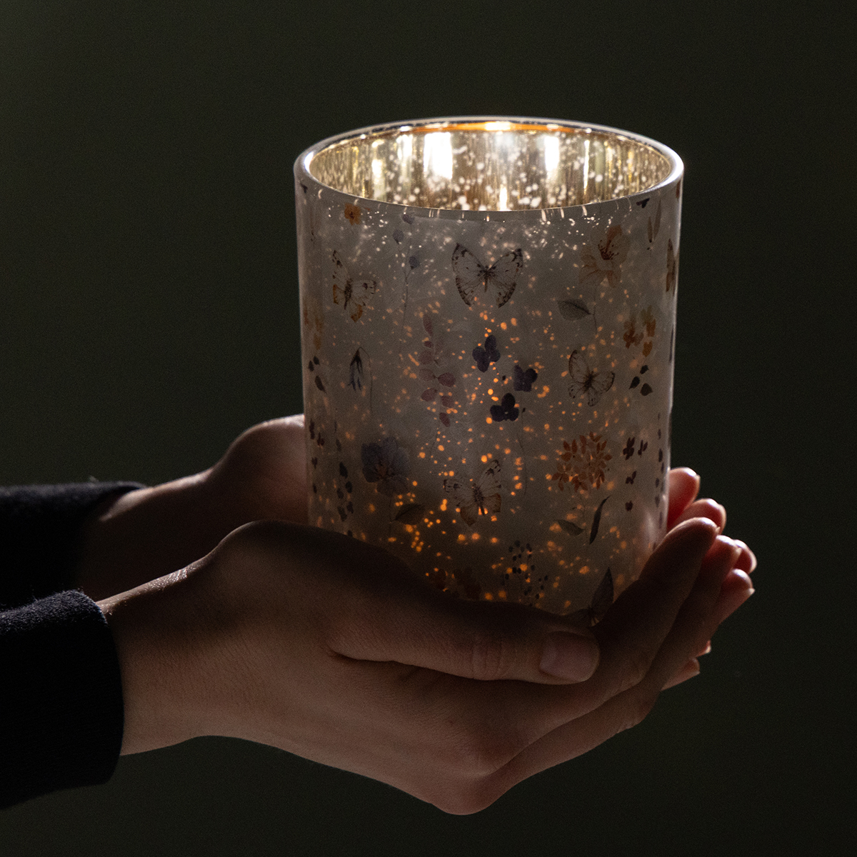 Das 4-teilige Windlicht-Set besticht durch filigrane Schmetterlingsmotive und edle silberne Innenbeschichtungen. Die Anmut des Landhausstils zeigt sich durch natürliche Materialien und sanfte Farben. Die Windlichter passen wunderbar zu Holzelementen, zartem Blumenarrangement oder rustikalem Leinenstoff und schaffen so ein harmonisches Gesamtbild. Perfekt für Floristen, Eventplaner und Boutique-Inhaber!