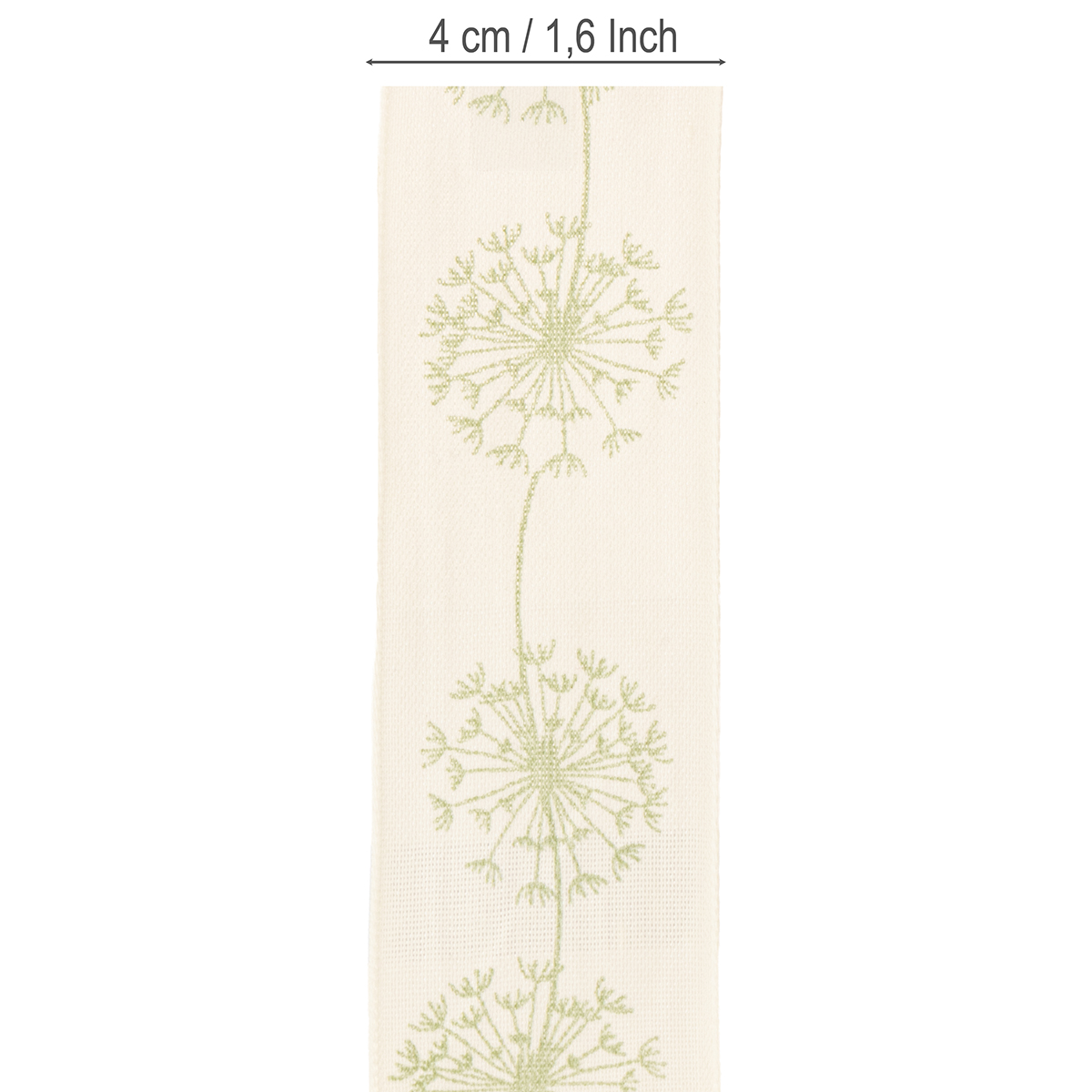 Produktname: Dekoband Creme mit Pusteblumenmuster 40mm Breite 15m Länge zum Basteln und Dekorieren