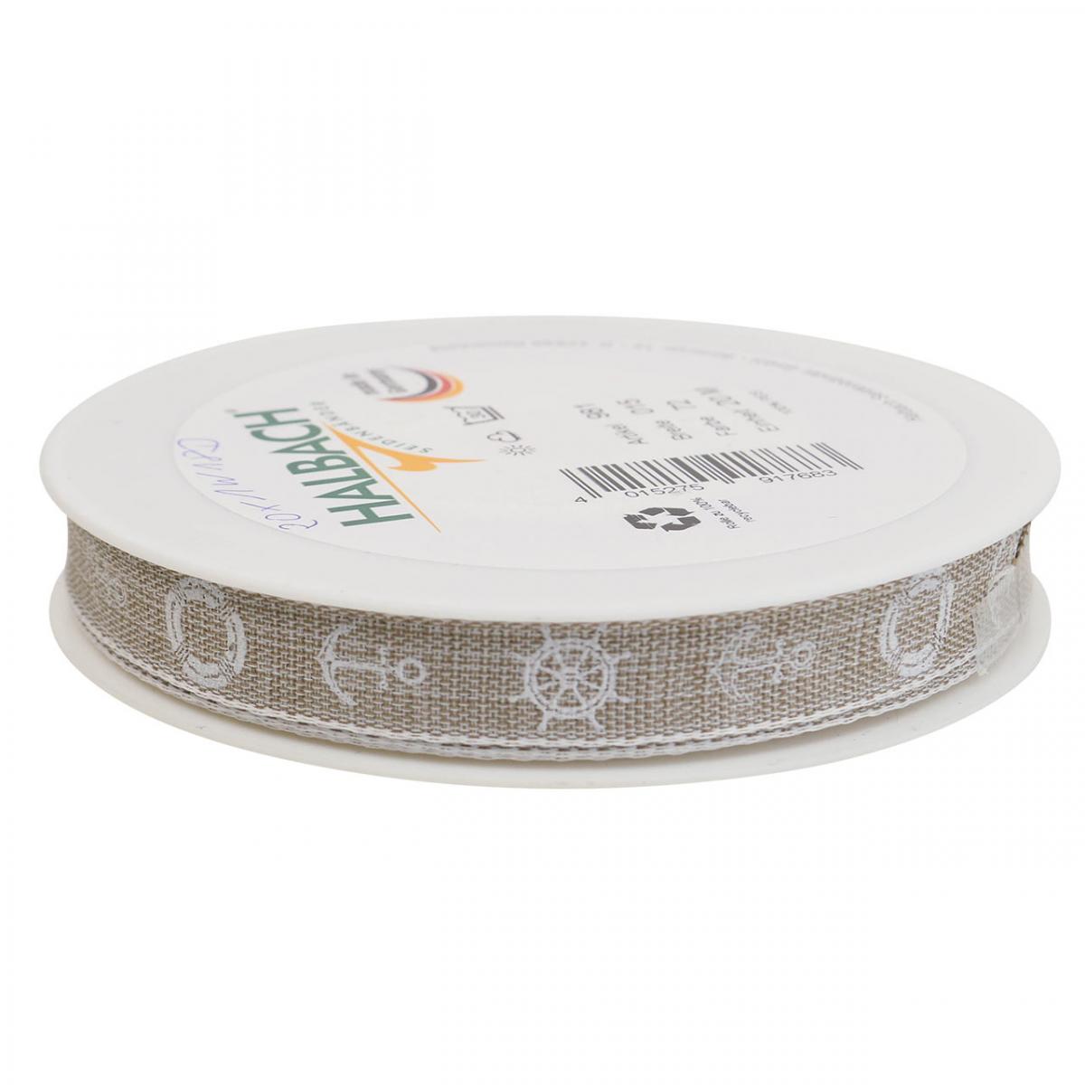 Webband Anker Dekoband maritim Braun, Weiß 15mm 20m