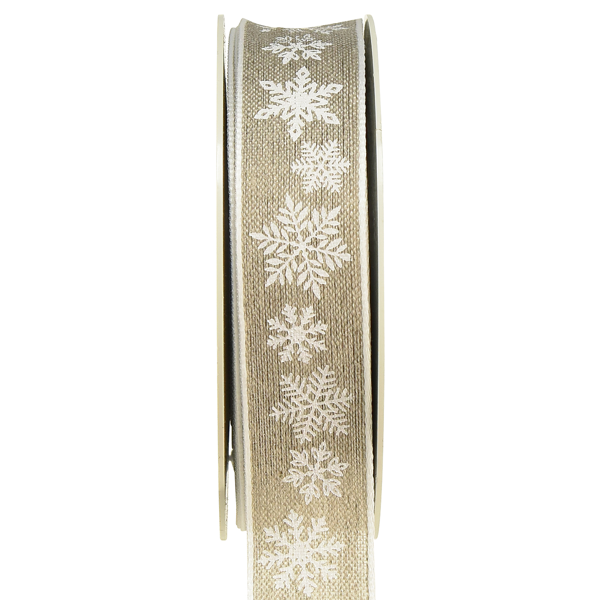 Produktname: Dekoband Weihnachten Schneeflocke Grau Weiß B25mm L20m