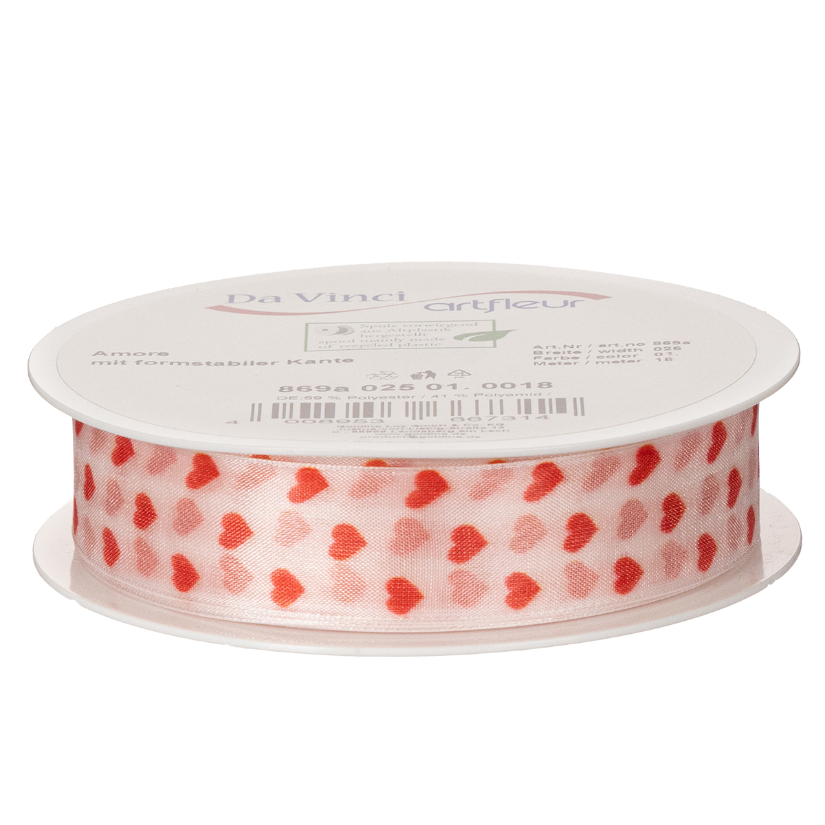 Produktname: Geschenkband Herzen ideal für kreative Verpackungsideen und persönliche Geschenke 2,5 cm 15m