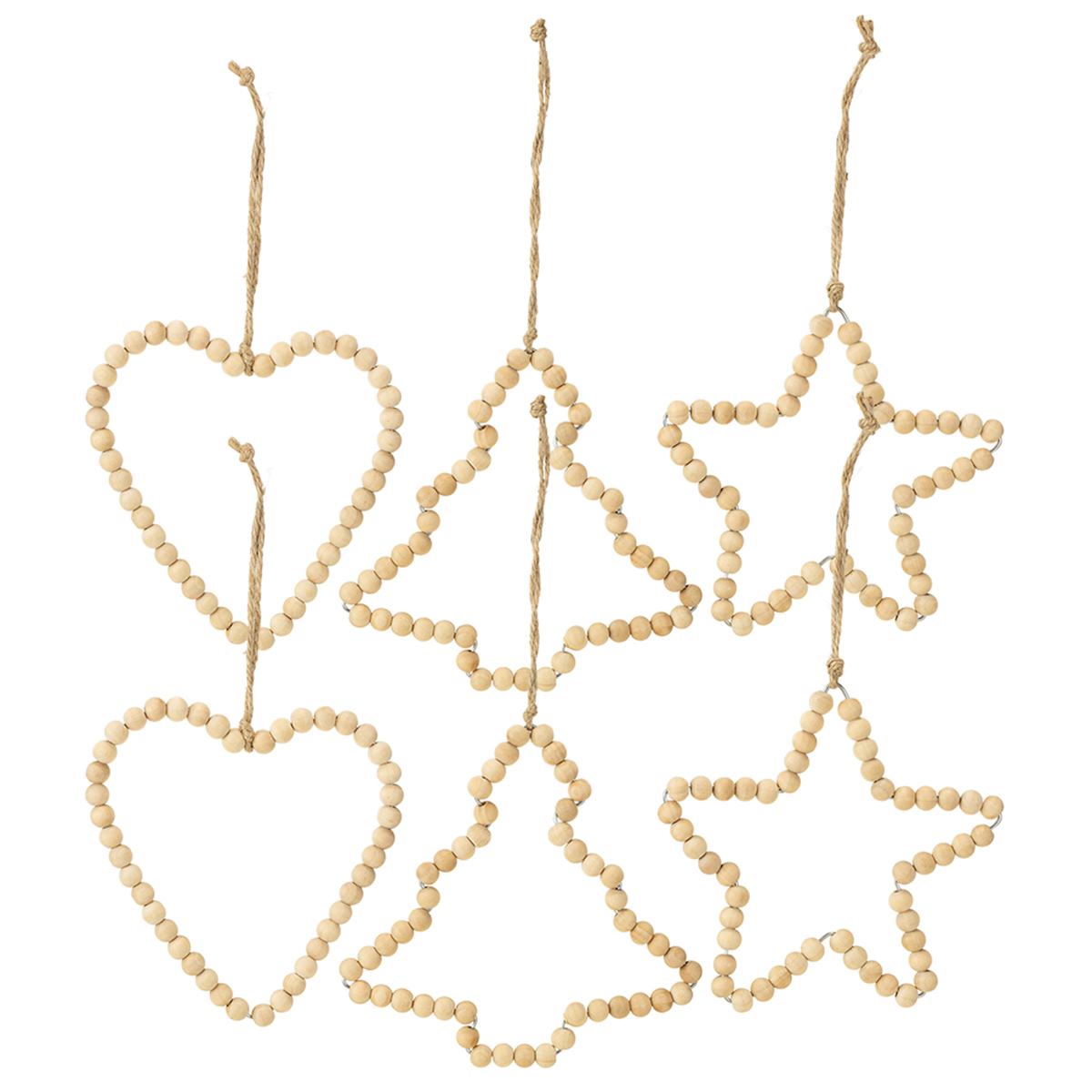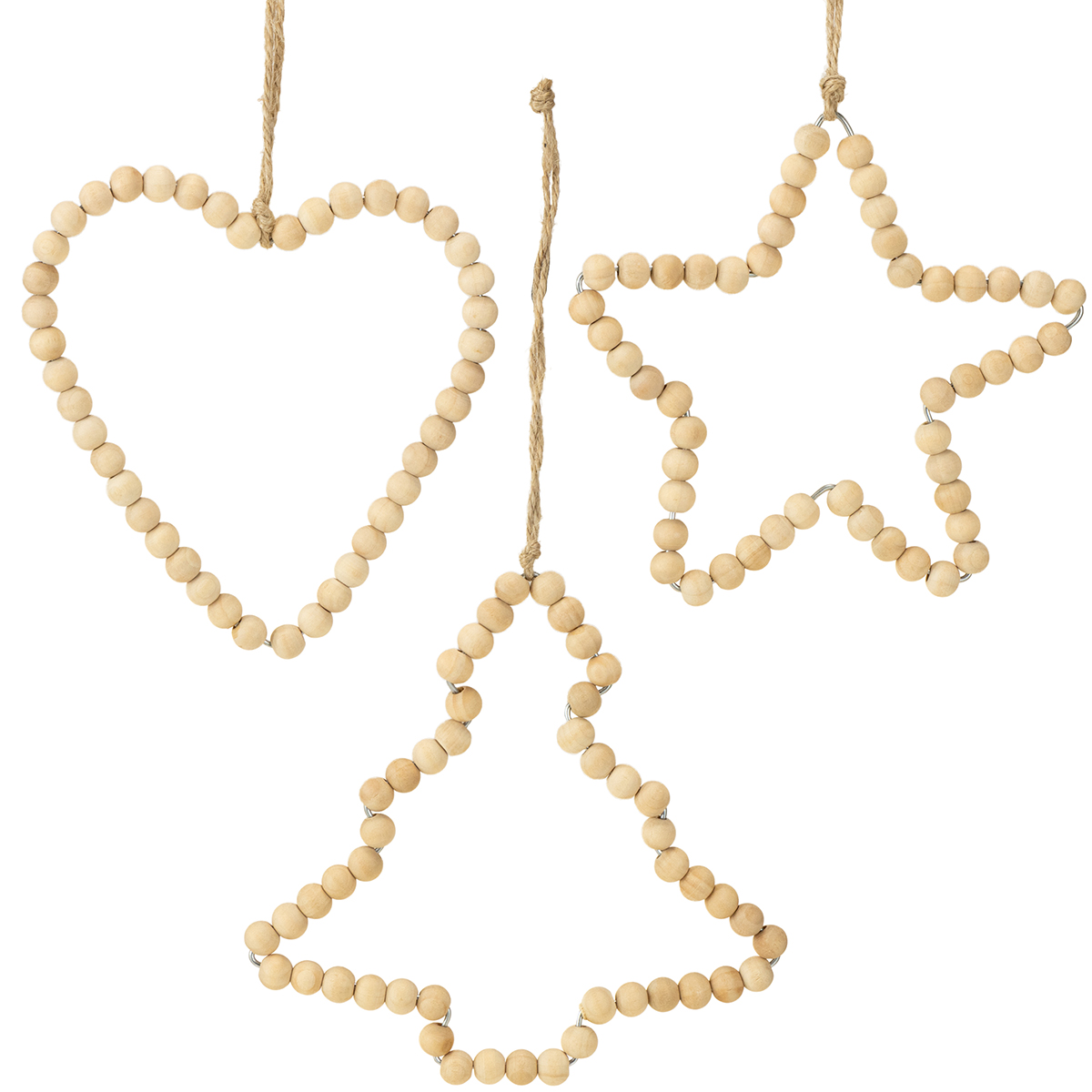 Dekohänger Weihnachten Holzperlen Herz Stern Baum H13cm 6St