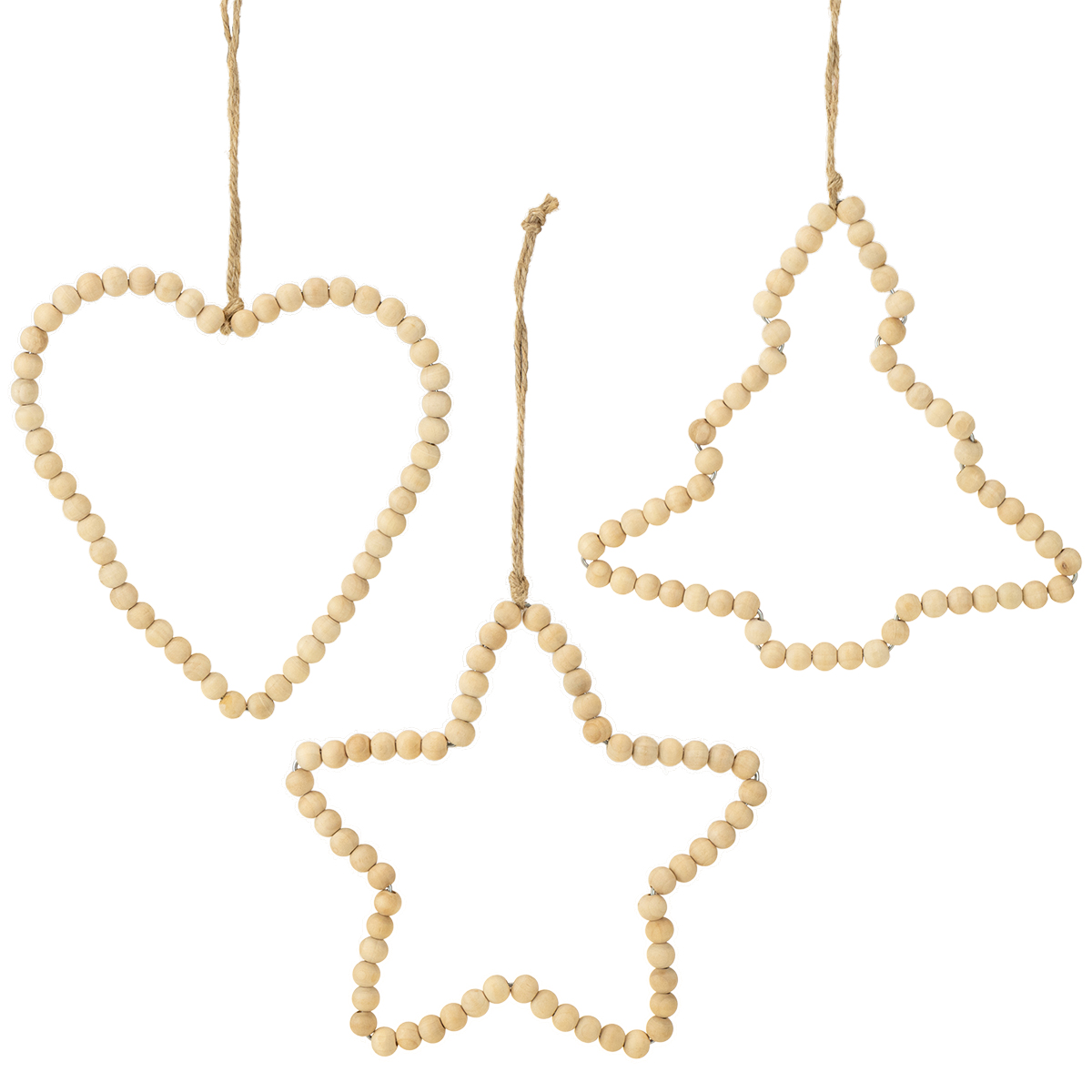 Dekohänger Weihnachten Holzperlen Herz Stern Baum H16cm 3 St