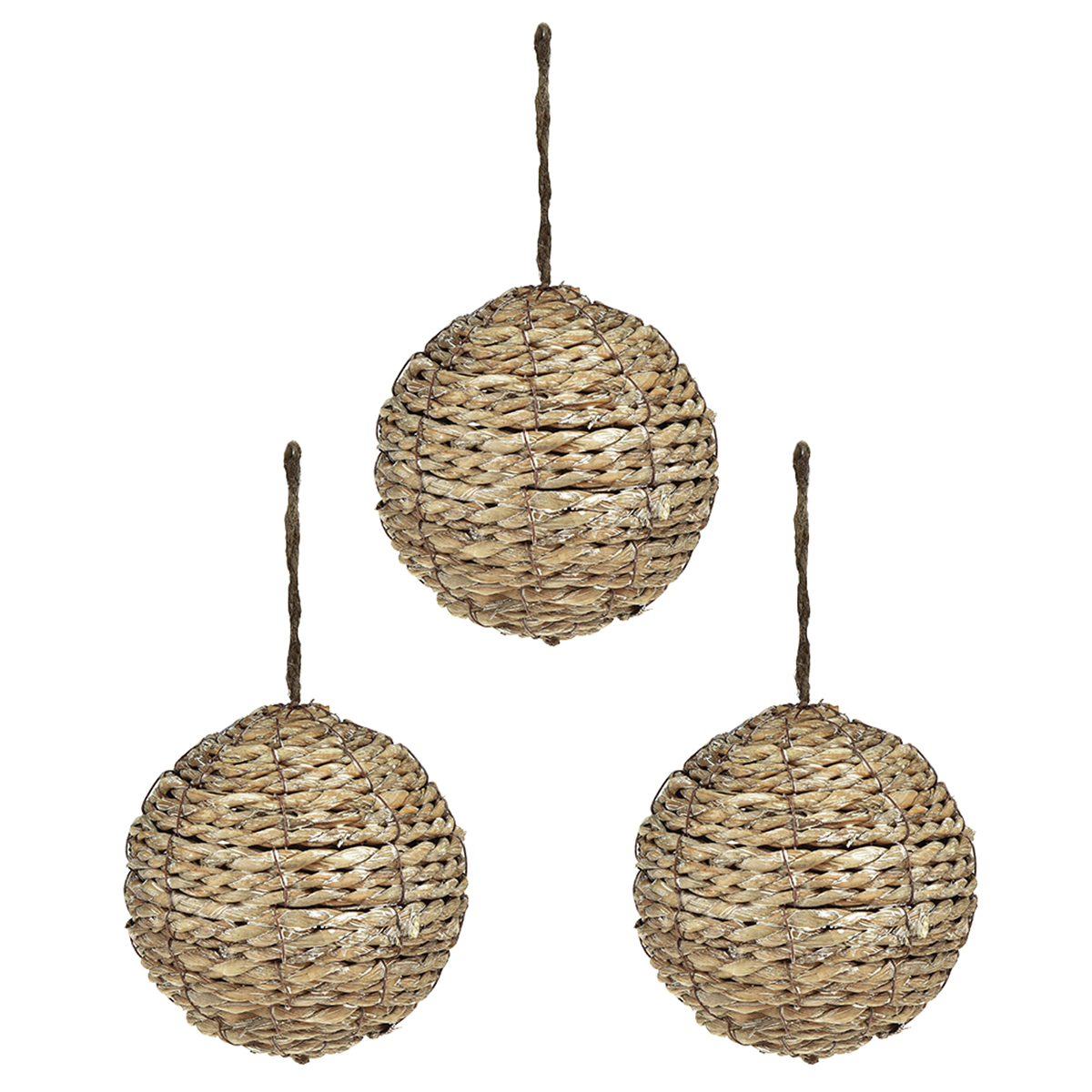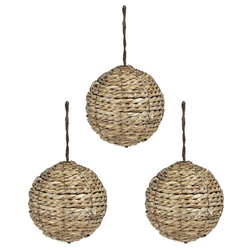 Produktname: Dekokugeln zum Aufhängen Kugeln Stroh Grau Ø15cm 3St