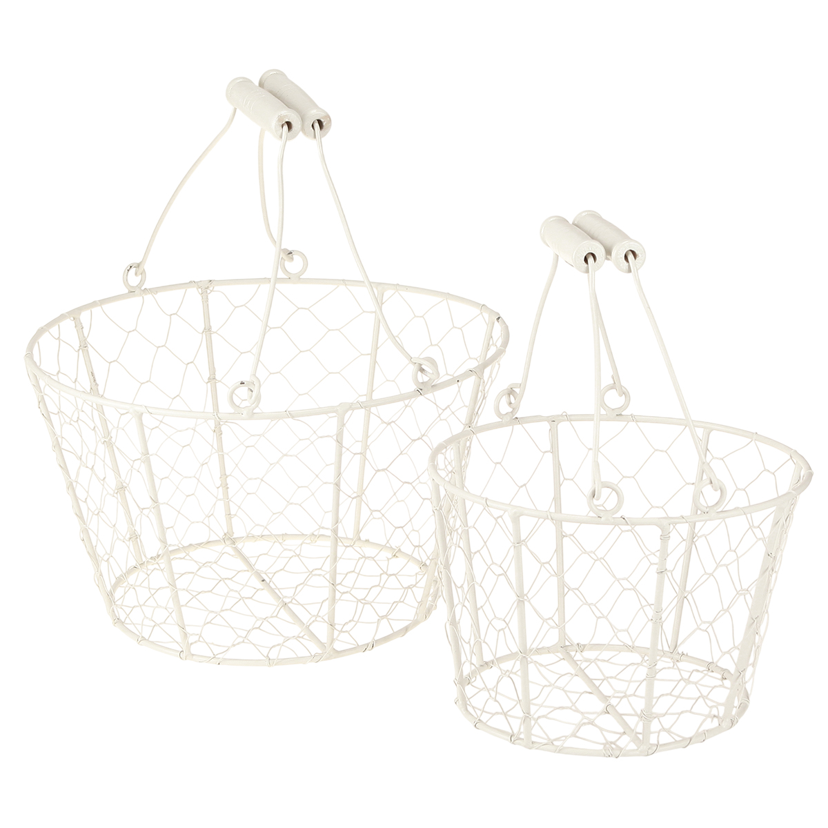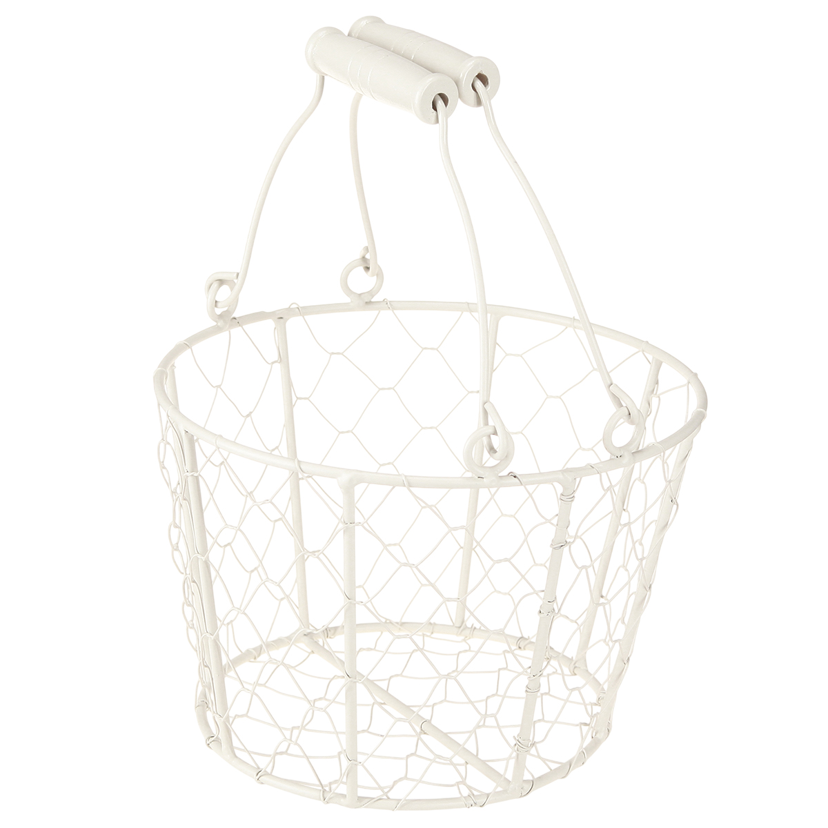 Dekorativer Drahtkorb weiß 30cm mit Griffen – Charmante Deko für Blumen, Kerzen und Gartenideen