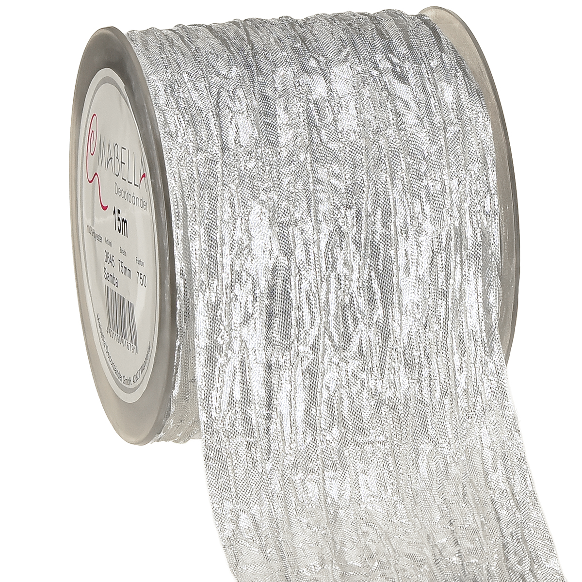 Produktname: Dekorband Geschenkband Tischband Silber Hell 75mm 15m für elegante Eventdekoration