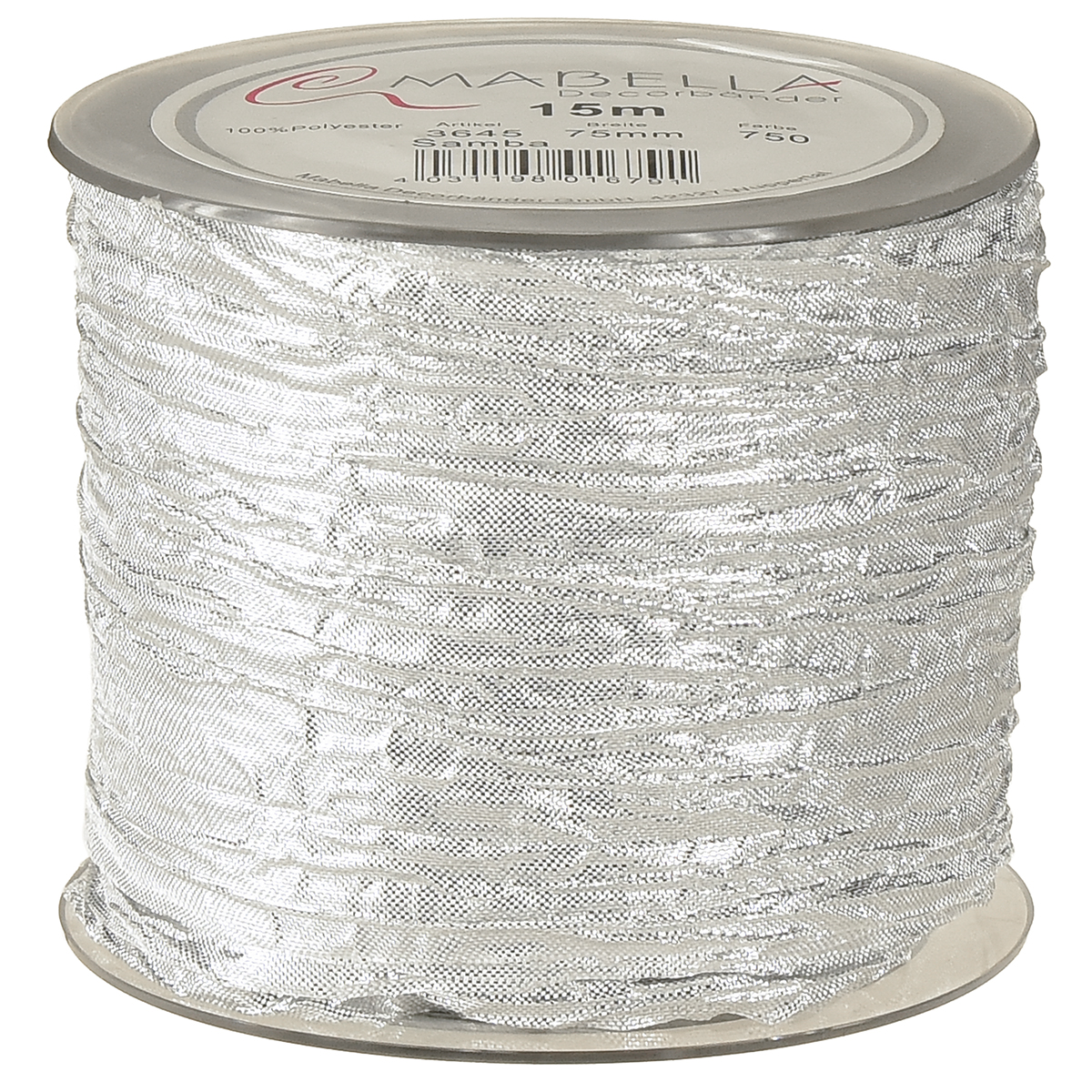 Unser Dekorband in hellem Silber ist das perfekte Accessoire für alle, die stilvolle Dekorationen für besondere Anlässe kreieren möchten. Ob als Geschenkband oder Tischband, die glänzende Knitteroptik verleiht jedem Event, sei es Hochzeiten oder Gala-Abende, einen Hauch von Glamour und Raffinesse. Hergestellt aus robusten Kunstfasern, garantiert dieses Band nicht nur Eleganz, sondern auch Langlebigkeit.