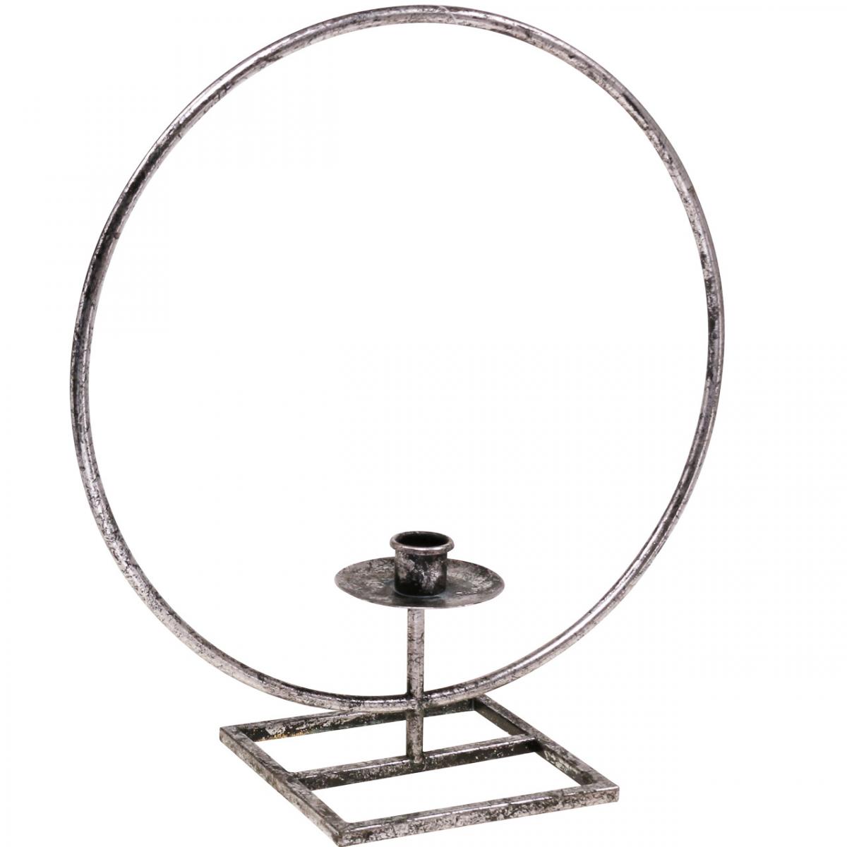 Produktname: Dekoring Metall Stabkerzenhalter Silbern Shabby Chic Ø32cm