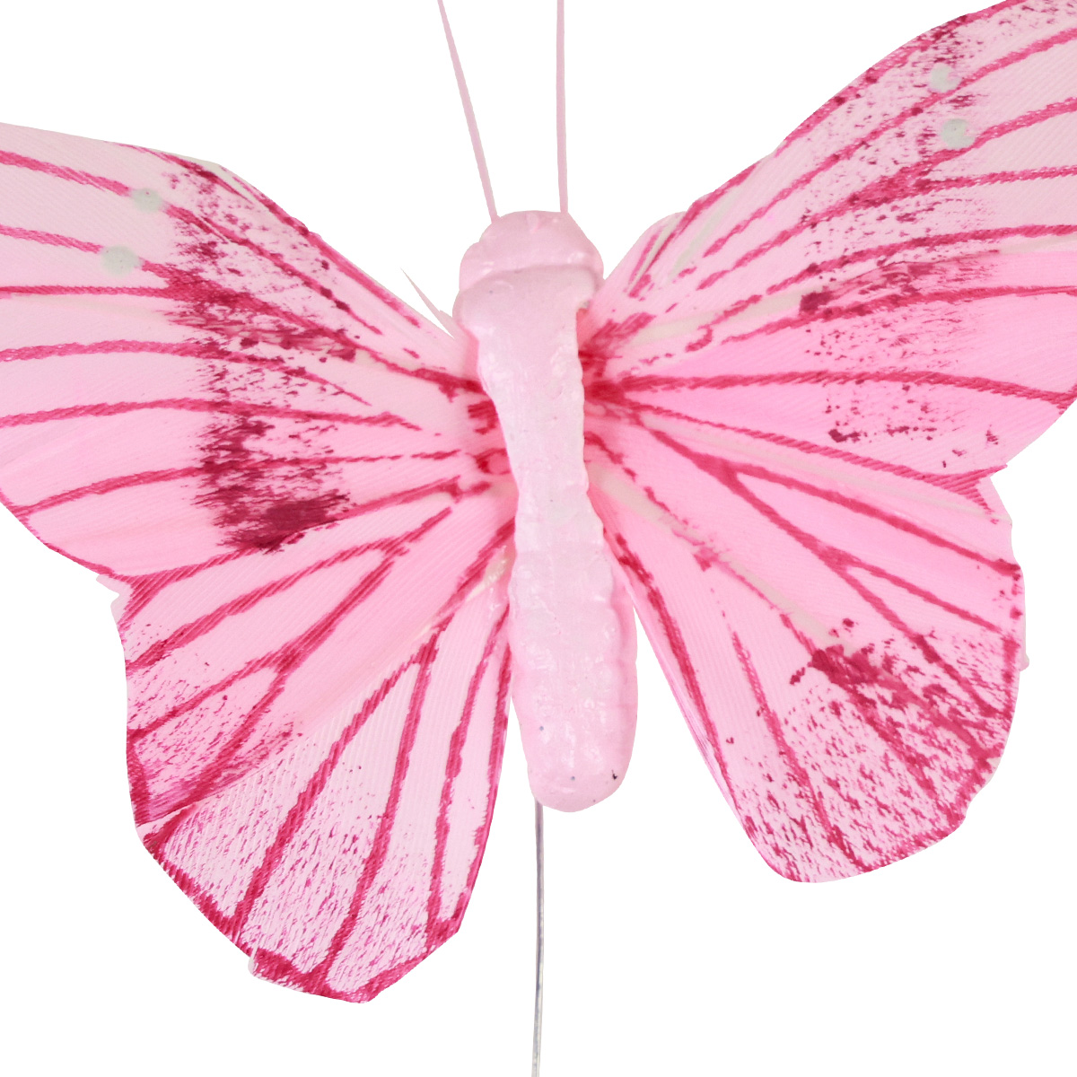 Produktname: Deko Schmetterlinge am Draht Bunt Federn 5,5×8cm 12 St