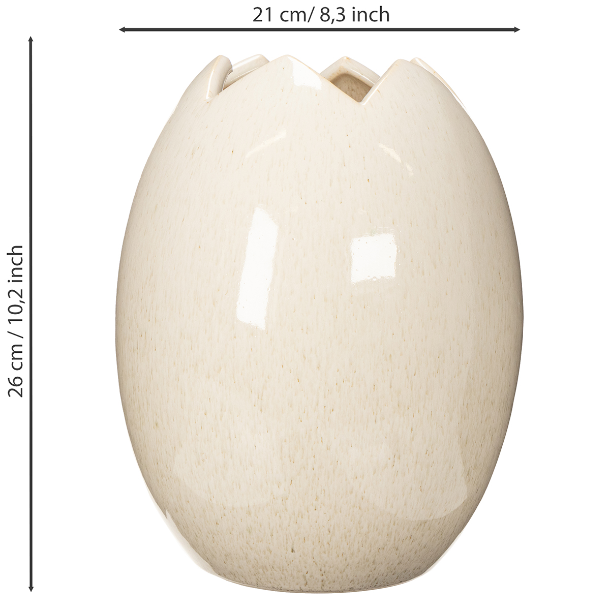 Dekovase in Ei-Form aus Keramik, 26 cm, weiße Frühlingsdeko für Wohnzimmer und Tisch