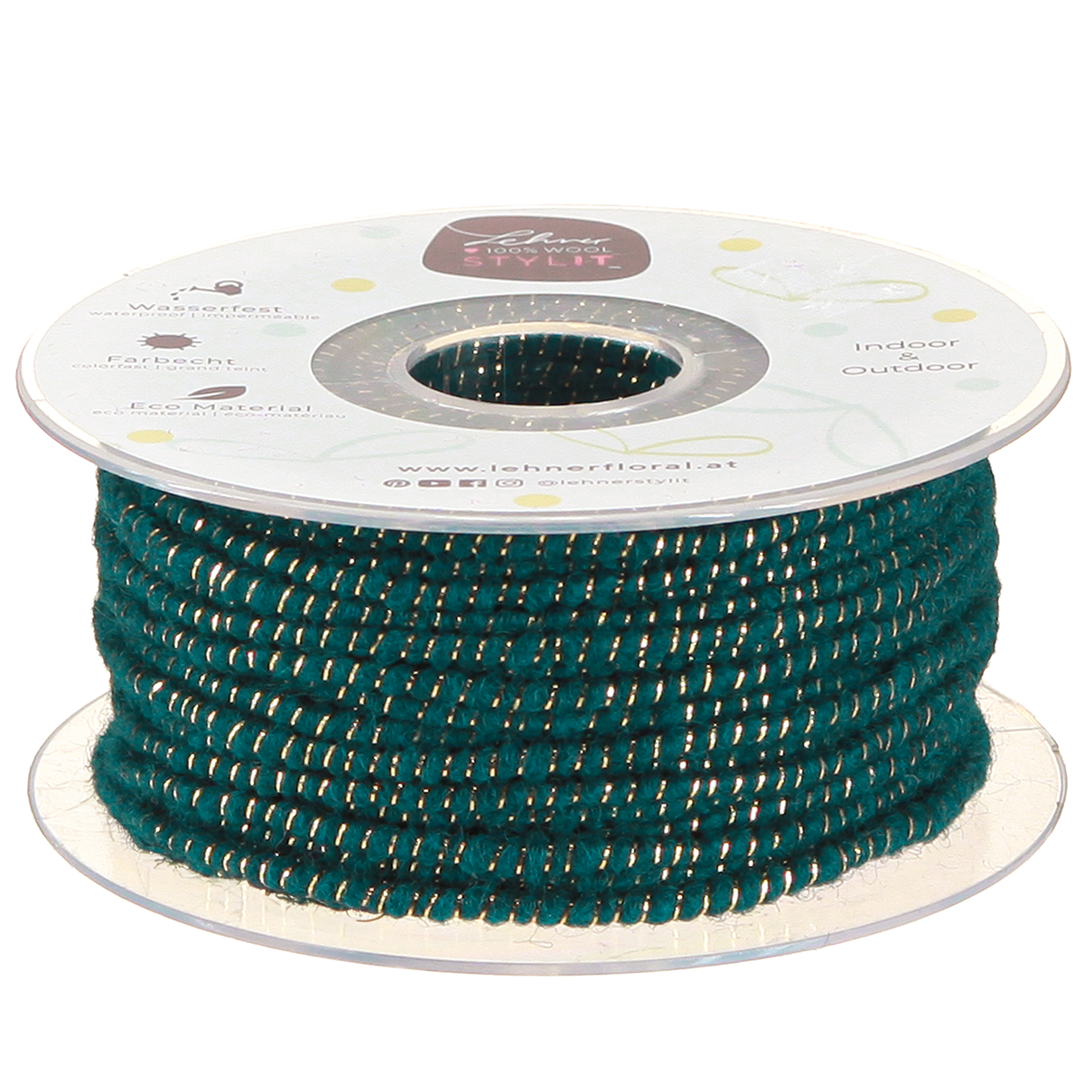 Produktname: Wollfaden mit Draht Filzschnur Wollschnur Türkis Gold Ø5mm 33m
