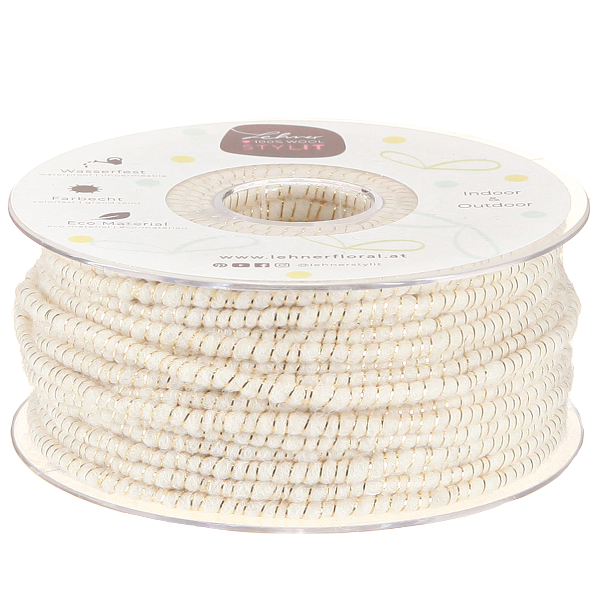Produktname: Dochtfaden Glamour Weiß/Gold mit Draht 33m