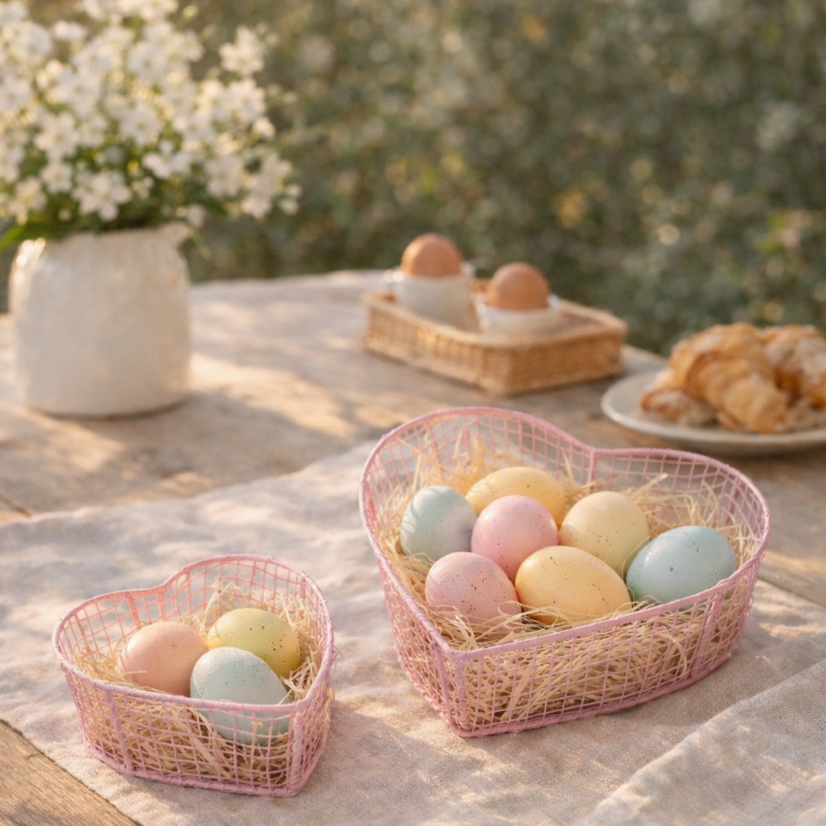 Die Drahtkörbe lassen sich mühelos über mehrere Saisons hinweg wiederverwenden. Sie eignen sich zur Platzierung auf Aktions- und Promotionflächen und können problemlos mit Warengruppen wie künstlichen Blumen, Geschenkartikeln oder saisonalen Dekoelementen kombiniert werden. Ihre leichte Lagerfähigkeit macht sie besonders praktikabel für den Großhandel, während ihre romantische Gestaltung eine hohe Relevanz als impulsstarkes Dekoelement für verschiedene Themengruppen bietet.