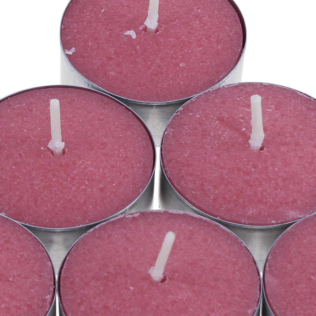 Die kleinen Raumduft-Kerzen haben mit einem Durchmesser von circa 3,6 Zentimetern die Größe handelsüblicher Teelichter und besitzen typische Aluschälchen. – So können Sie die kleinen Teelicht-Kerzen perfekt in ein Windlicht oder einen Teelichthalter einsetzen.