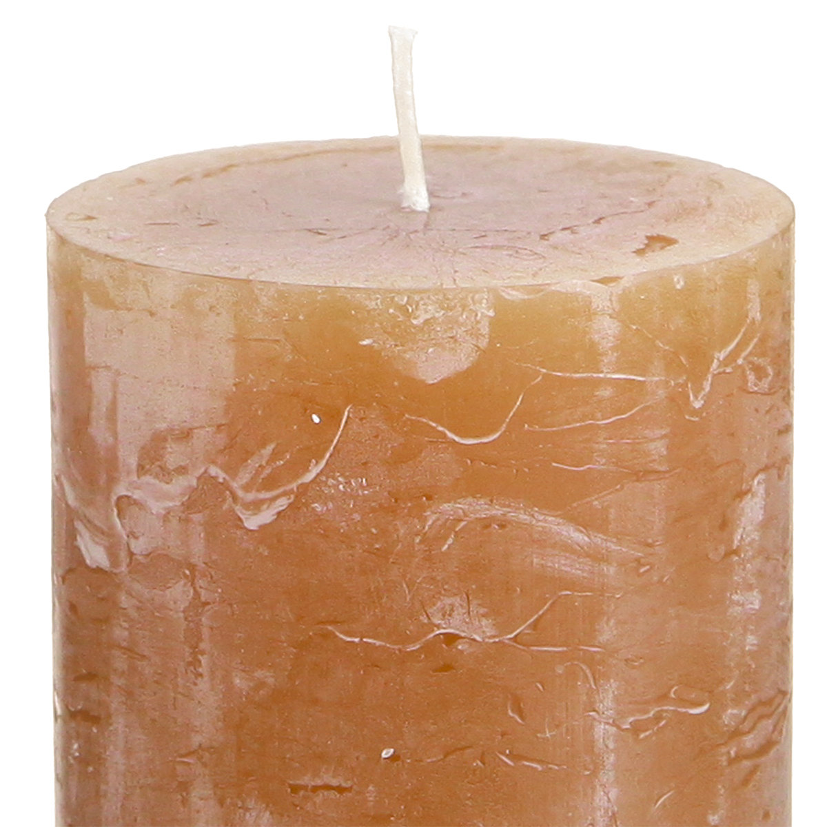 Verleihen Sie Ihrem Zuhause mit unseren karamellfarbenen Stumpenkerzen ein Gefühl von Wärme und Gemütlichkeit. Die durchgefärbten Kerzen vereinen rustikalen Charme mit einer warmen, einladenden Atmosphäre und sind das ideale Wohnaccessoire für einen entspannten und stilvollen Abend.
