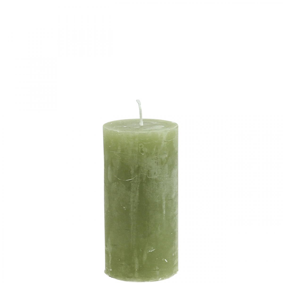 Produktname: Stumpenkerzen Olivgrün 50×100mm Set 4 Deko Durchgefärbt