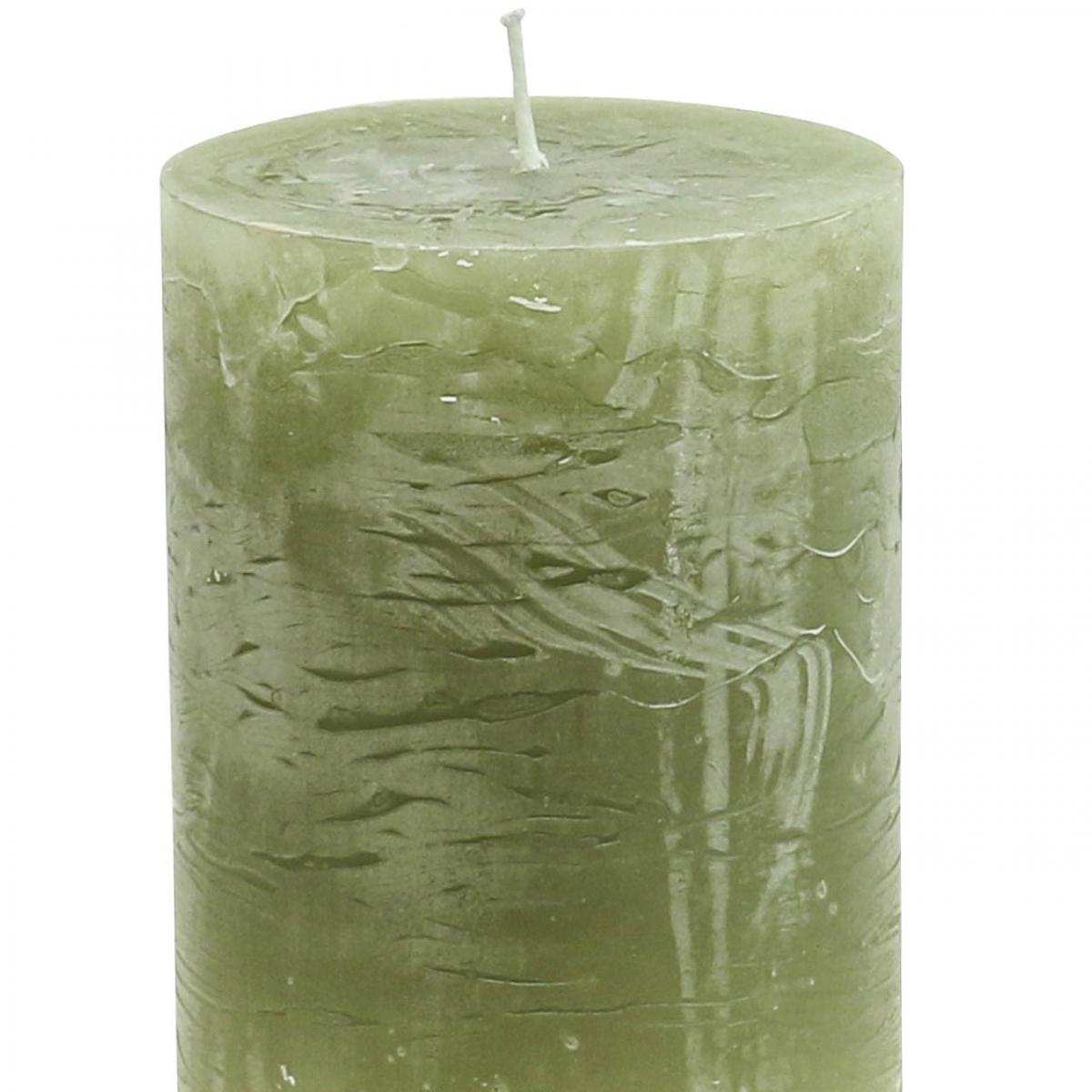 Durchgefärbte Olivgrüne Stumpenkerzen 60×80mm 4er Pack für Deko & Advent